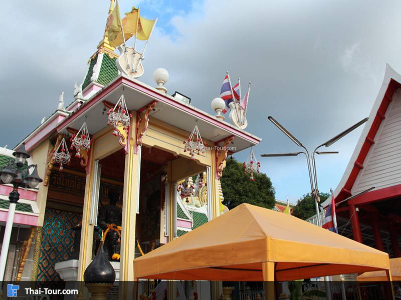 ในปี พ.ศ. 2310 สิ่งที่น่าชมอีกแห่งหนึ่งในวัดก็คือ พลับพลาตรีมุข อันสร้างด้วยไม้เก่าแก่ มีพระพุทธรูปหล่อสำริดทรงเครื่องกษัตริย์งดงามมาก ชาวเมืองชลบุรีเรียกกันว่า หลวงพ่อเฉย ซึ่งนับว่าศักดิ์สิทธิ์โดยเฉพาะเศษผ้าจีวรที่คลุมองค์หลวงพ่อ นำไปผูกข้อมือเด็กที่เจ็บออดแอดเลี้ยงยากก็จะกลายเป็นเด็กเลี้ยงง่ายอย่างน่าอัศจรรย์