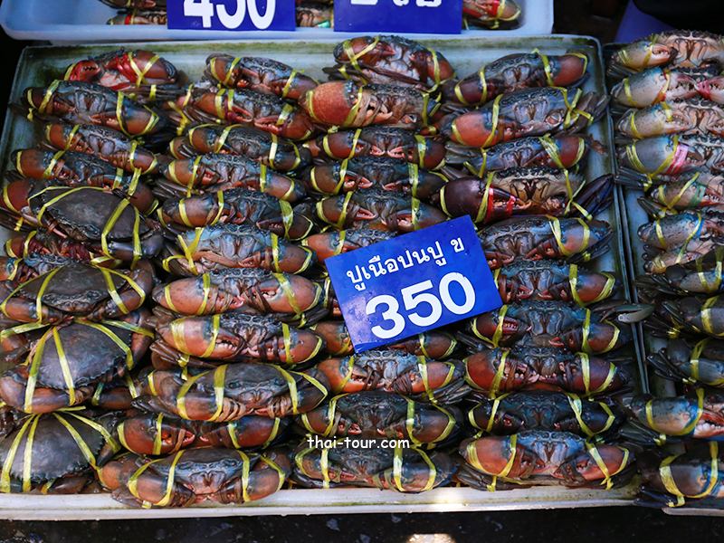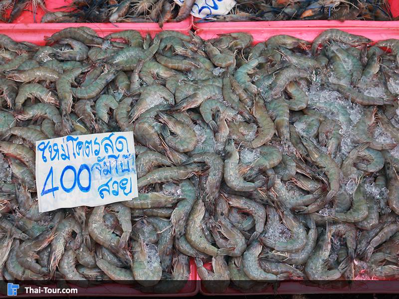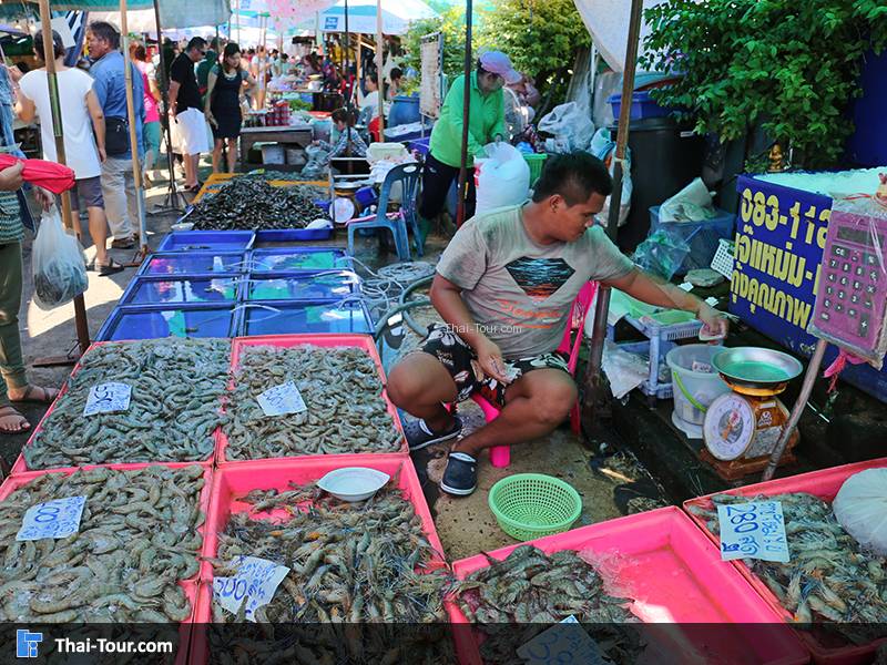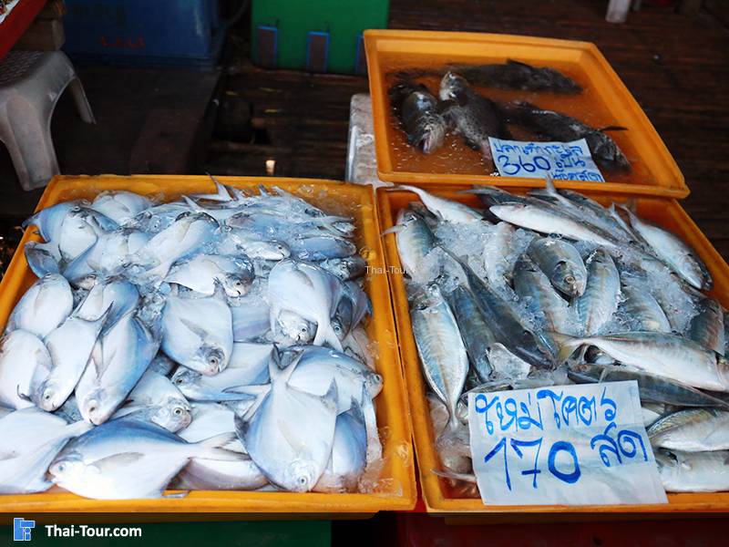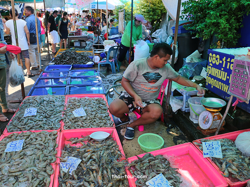 ภายในตลาดสะพานปลาอ่างศืลา จะมีร้านขายอาหารทะเลสดมากมาย