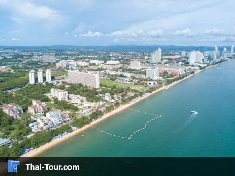 หาดจอมเทียนจะตั้งอยู่ ทางตอนใต้ของพัทยาใต้ เป็นชายหาดยาวประมาณ 6 กิโลเมตร เป็นชายหาดที่เป็นที่นิยมของนักท่องเที่ยว มีกิจกรรม และกีฬาทางน้ำให้เล่นมากมาย ที่นี่จะมีเรือค่อนข้างน้อยกว่าทางหาดพัทยา มีโรงแรม ที่พัก บ้านพัก ให้บริการเรียงรายอย่างมากมาย