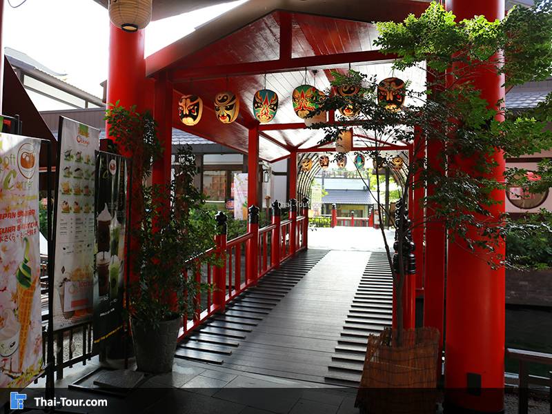 มีสะพานไม้สไตล์ญี่ปุ่นให้เดินข้ามคลองเล็กๆ ที่อยู่ในภาย เจ พาร์ค ศรีราชา