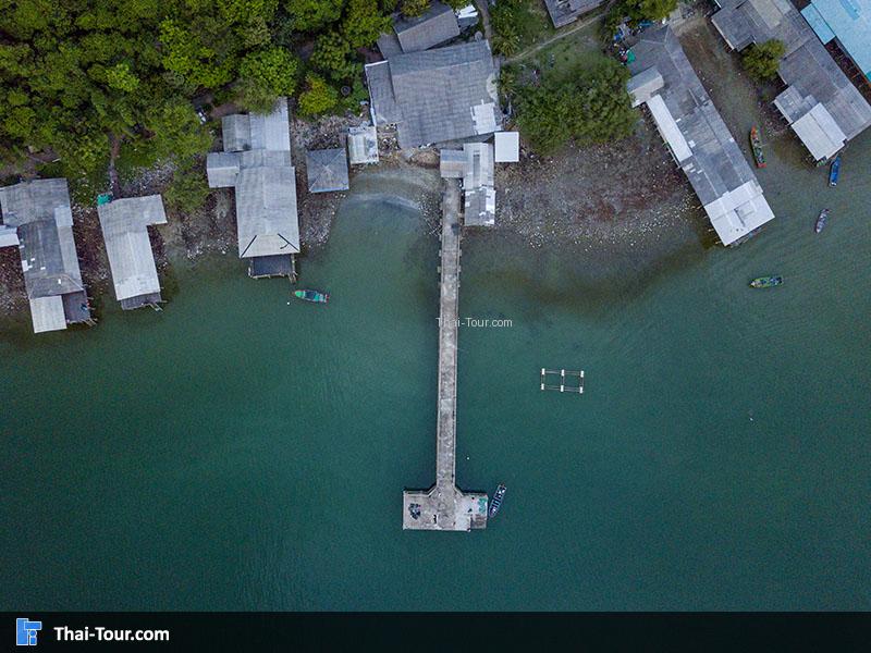 ภาพมุมสูง ท่าเรือ เกาะพิทักษ์
