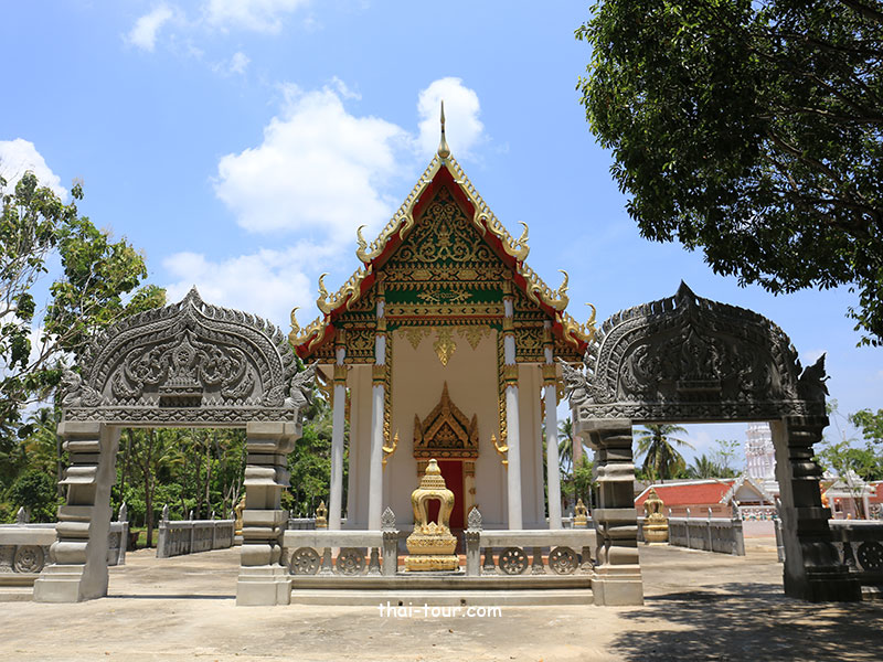 วัดประเดิม แหล่งโบราณคดีเมืองชุมพรเก่า นักโบราณคดีท้องถิ่นเชื่อว่า บริเวณวัดเคยเป็นที่ตั้งของเมืองชุมพรเก่า เนื่องจากมีการพบแท่งศิลา ซึ่งแรกเข้าใจว่าเป็นเสาหลักเมือง แต่ต่อมาพบว่าเป็นพระพุทธรูปหินทรายที่ผุกร่อน ชาวบ้านจึงเรียกว่าพระข่อย พระธาตุเจดีย์บรรจุพระบรมสารีริกธาตุ ในสมัยศรีวิชัย เศียรพระพุทธรูปหินทรายศิลปะศรีวิชัยเกือบ 20 เศียร ในพระอุโบสถ ซุ้มประตูกำแพงแก้วทางเข้าอุโบสถ อาคารโรงเรียนปริยัติธรรมและลวดลายตกแต่งหน้าจั่ว อันเป็นสถาปัตยกรรมท้องถิ่นของจังหวัดชุมพร