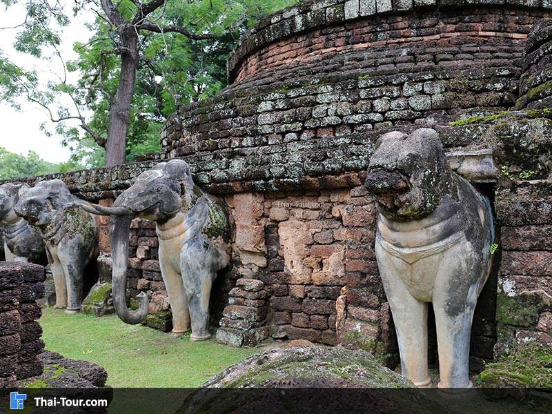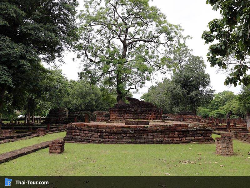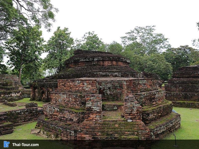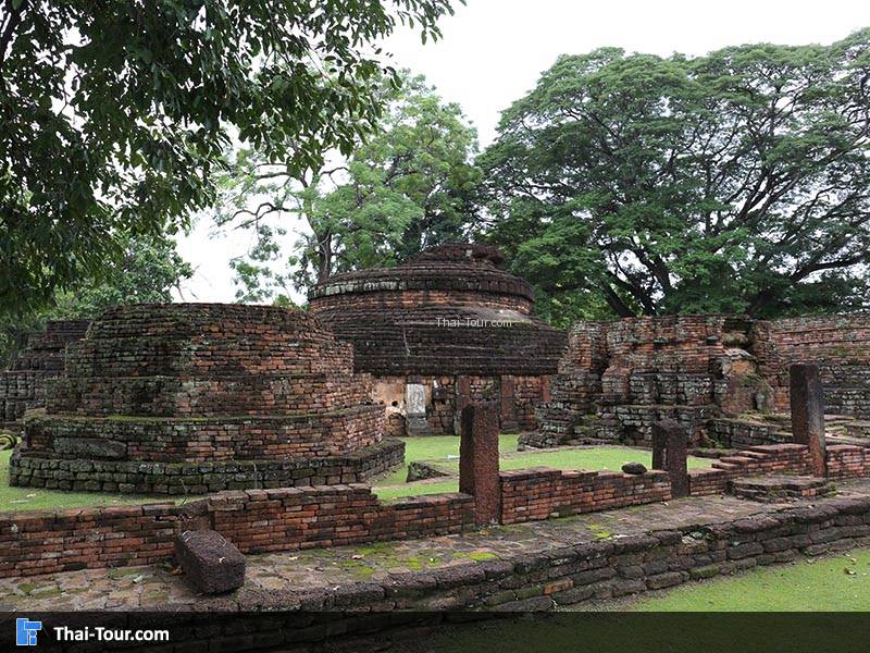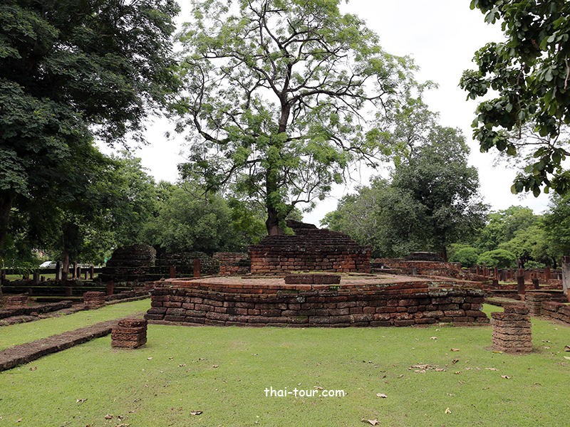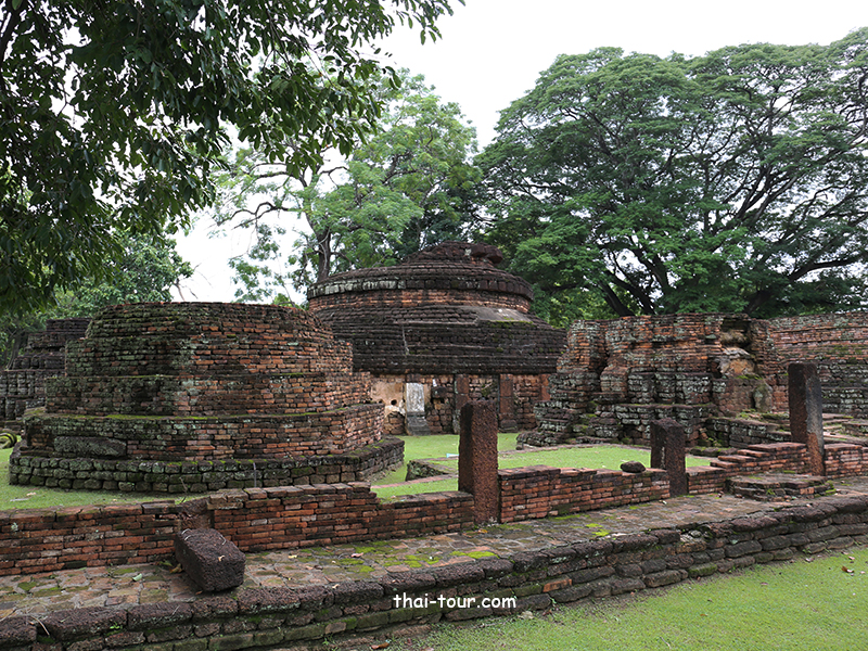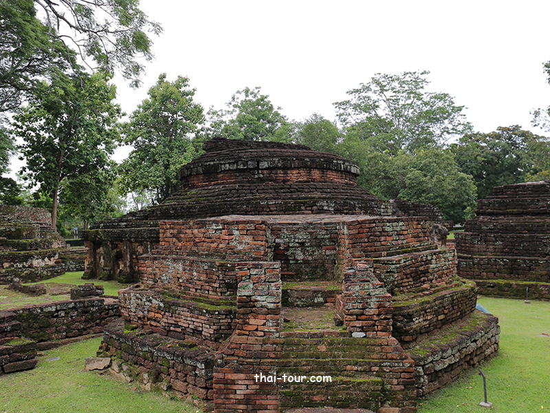 พระเจดีย์กลมแบบลังกาองค์ใหญ่เป็นประธาน ฐานสี่เหลี่ยม