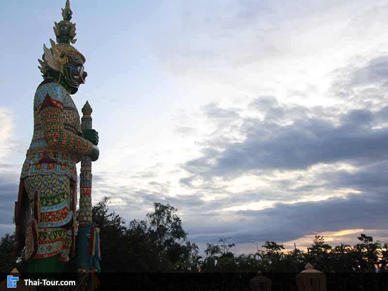 พระพุทธรูปปางขอฝนเนื้อสำริดที่ใหญ่ที่สุดในไทย ซึ่งพระปางขอฝน ได้ถูกใส่ไว้ให้เป็นหนึ่งใน สถานที่ท่องเที่ยวตามตำนานเขาเล่าว่าของการท่องเที่ยวแห่งประเทศไทยว่า .. ครั้งหนึ่งในสมัยพุทธกาลนั้นฝนแล้งมาก แต่ด้วยพระพุทธบารมี…ได้ทรงพลิกพื้นที่แห้งแล้งให้มีน้ำฝนหลั่งไปทั่วทุกสารทิศ และที่อำเภอห้วยกระเจา คืออีสานจังหวัดกาญจนบุรี จึงเป็นที่มาของพระปางขอฝน ที่สุดแห่งความศรัทธากับประติมากรรมทางพุทธศิลป์ พระพุทธรูปสำริดปางขอฝนที่สูงที่สุดในประเทศไทยและงดงามว่ากันว่า หากได้มากราบไหว้ ชีวิตจะพบแต่ความร่มเย็นเป็นสุขดั่งแผ่นดินที่ได้รับสายฝน