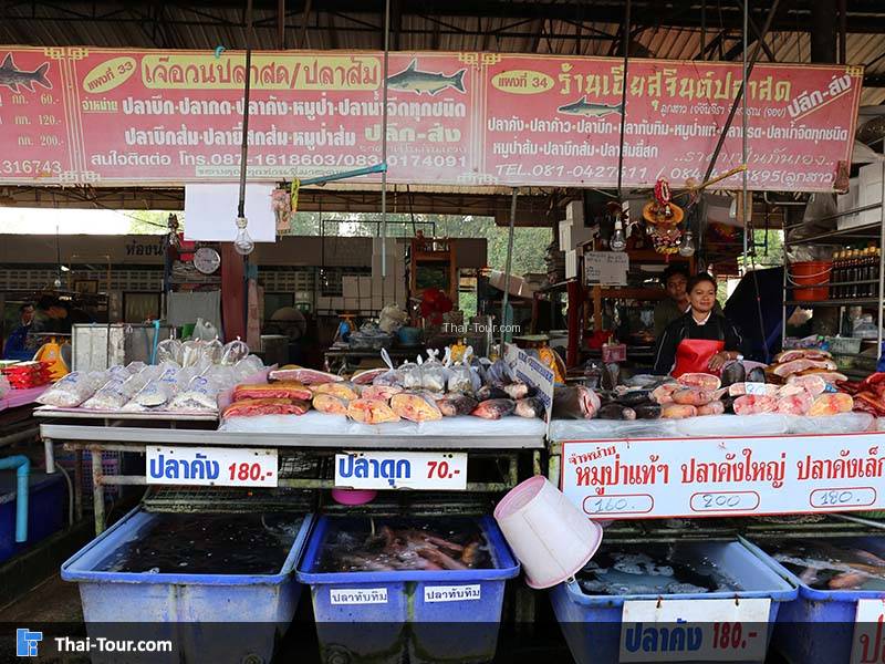 ตลาดสดทองผาภูมิ ตั้งอยู่ที่ตำบลท่าขุนแผน เดิมตลาดแห่งนี้มีความเป็นพื้นบ้าน เพราะการวางตั้งขายสินค้าส่วนใหญ่จะวางบนพื้นและเป็นสินค้าพื้นเมือง แม่ค้าเป็นคนพื้นเมืองหลากหลายชนิด บรรยากาศดูธรรมชาติ มีของขายเป็น ผลไม้ตามฤดูกาล ปลาแม่น้ำ ของป่า ผักป่า ในบรรยากาศตอนเช้าจะเห็นหมอก และได้เห็นบรรบากาศแบบชาวบ้าน