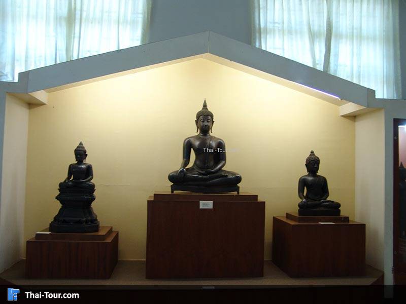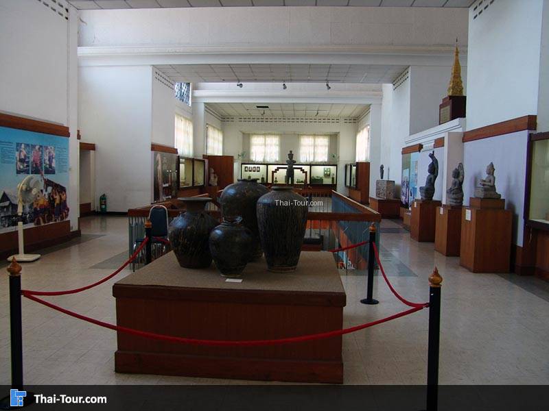 - ชั้นบน เป็นห้องโถงโหญ่จัดแสดงโบราณวัตถุชิ้นสำคัญมาก มาย เช่น พระพุทธรูปสมัยต่าง ๆ ของไทยและลาว พระพิมพ์ปางแสดงธรรมสมัยทวารวดี พระแผ่นเงินดุนสมัยทวารวดี พระพุทธรูปนาคปรกศิลปะลพบุรี ฯลฯ