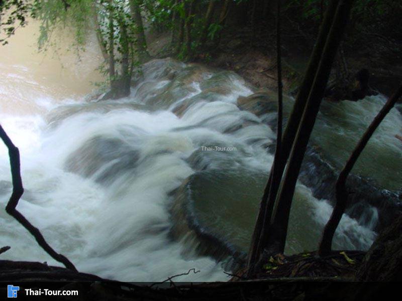 ตั้งอยู่บริเวณบ้านบางคราม-บ้านบางเตียว อยู่ห่างจากอำเภอเมืองกระบี่ตามถนนเพชรเกษม (กระบี่-ตรัง) ประมาณ 45 กม. จากนั้นแยกเข้าถนนสุขาภิบาล 2 ตรงที่ว่าการอำเภอคลองท่อม 12 กม. บริเวณโดยรอบนอกจากจะมีน้ำตกร้อนแล้ว ยังมีบ่อน้ำร้อน ลานน้ำร้อน และเขาน้อยจู้จี้ ที่มีทัศนียภาพสวยงาม มียอดเขาสูงประมาณ 520 เมตร และเป็นต้นกำเนิดของทางน้ำที่เรียกว่า คลองท่อม
