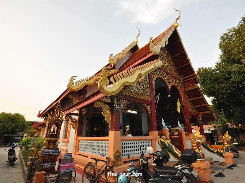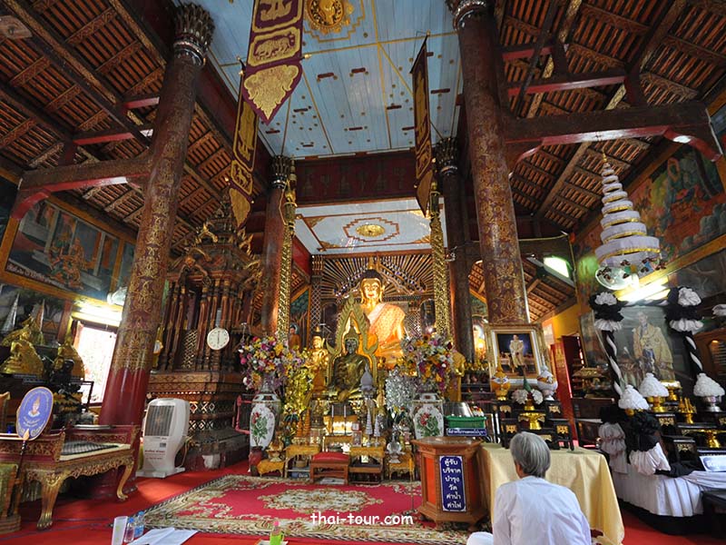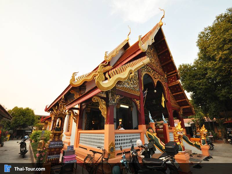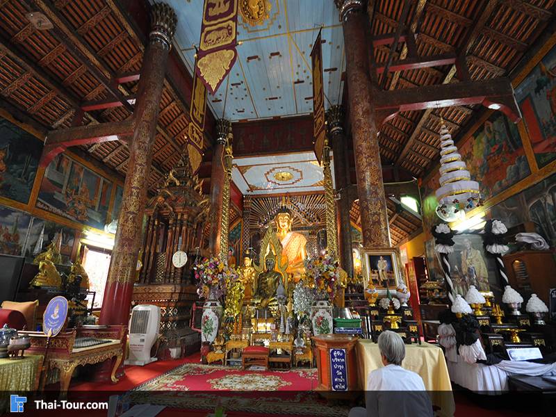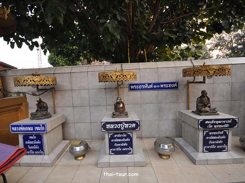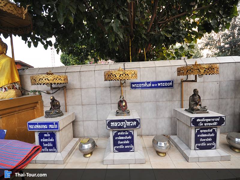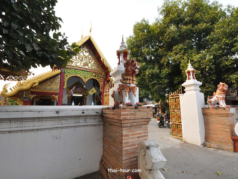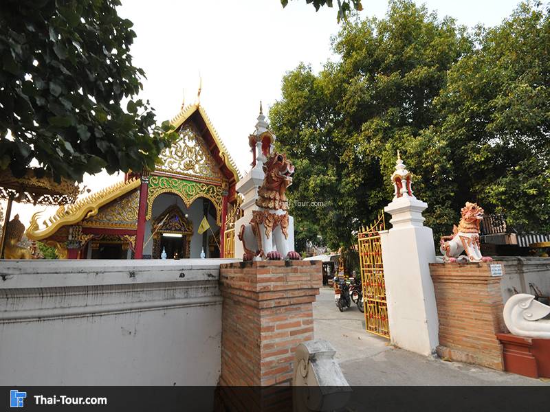 วัดประตูต้นผึ้ง ภายในวัด กำแพงด้านในจะประดิษฐานพระเกจิอาจารย์ดังหลายท่านไว้ให้นักท่องเที่ยวไปกราบไหว้บูชา เช่น หลวงปู่ทวด หลวงพ่อเกษมเขมโก พ่อครูบาศรีวิชัยและอีกหลายๆท่าน ใกล้ๆกันจะเป็นซุ้มศาลาที่ประดิษฐานพระพุทธรูปและองค์สาวกขององค์พระสัมมาสัมพุทธเจ้า บริเวณใกล้ๆกันที่มุมกำแพงวัดจะมีพ่อฤาษีชีวกประดิษฐานอยู่ ด้านซ้ายของโบสถ์จะเป็นที่ประดิษฐานพระพุทธองค์ขณะทรงปรินิพพาน
