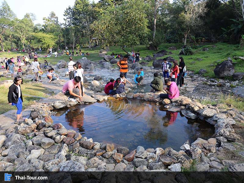 มีหลายบ่อตั้งอยู่รวมกันในพื้นที่ประมาณ 3 ไร่ บริเวณที่ทำการอุทยาน สภาพในบ่อน้ำร้อนเต็มไปด้วยโขดหินน้อยใหญ่ น้ำพุร้อนมีกลิ่นกำมะถันอ่อนๆ อุณหภูมิเฉลี่ย 73 องศาเซลเซียส บริเวณใกล้เคียงมีห้องบริการอาบน้ำแร่ 11 หลัง ตกแต่งด้วยพันธุ์ไม้ต่างๆ อย่างสวยงาม