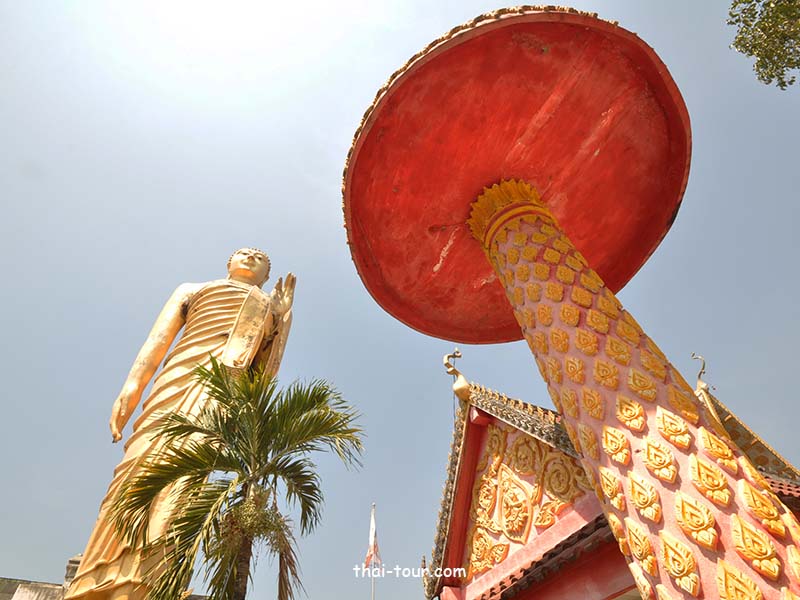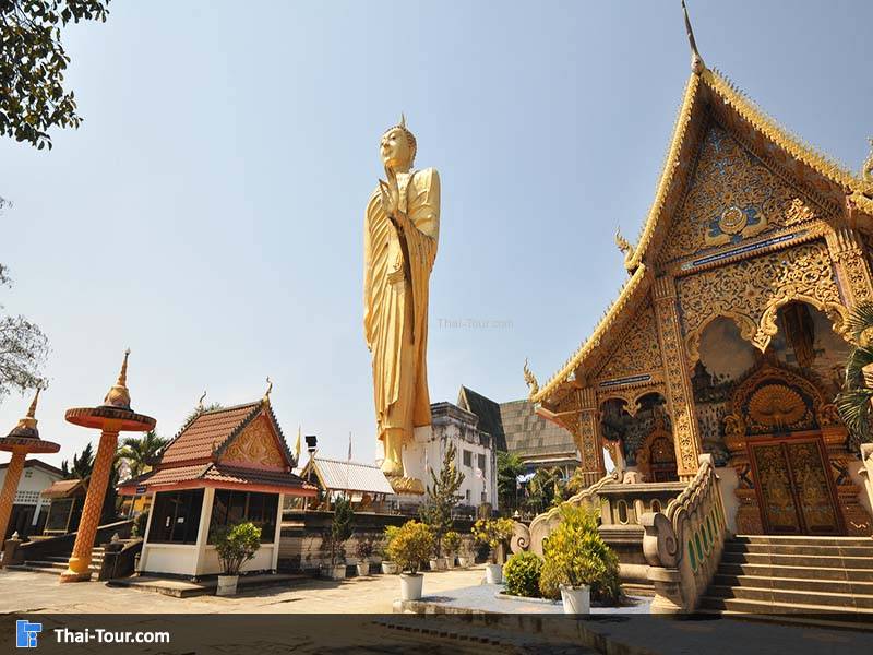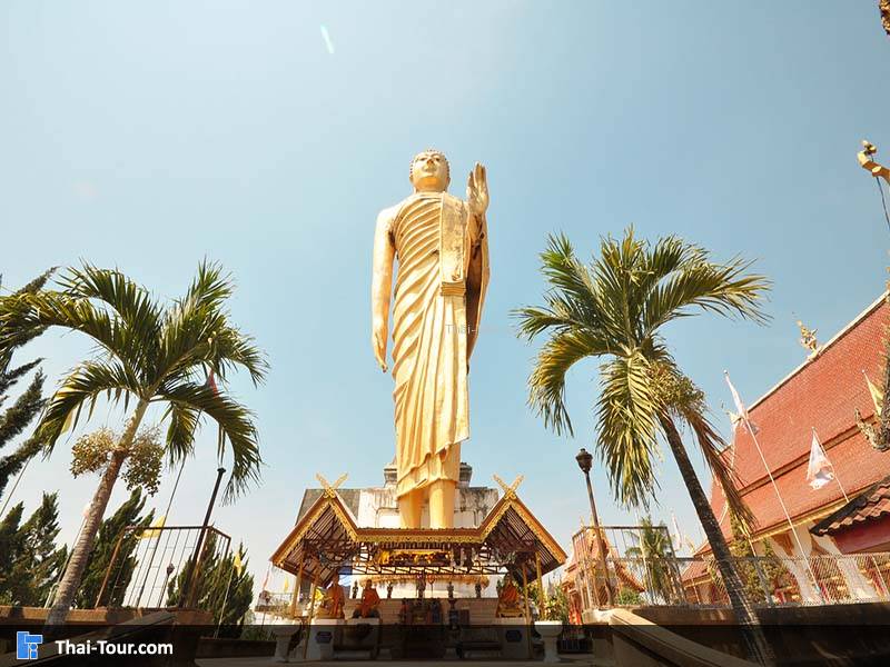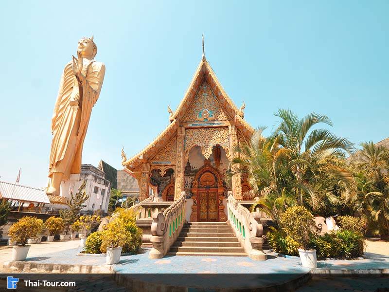 ตั้งอยู่หมู่ 10 ตำบลบ้านธิ ห่างจากอำเภอบ้านธิประมาณ 5 กม. วัดนี้เป็นที่ประดิษฐานพระพุทธรูปปางลีลาหรือพระพุทธเฉลิมสิริราช(พระเจ้ายืน)สูง 59 เมตร เป็นพระพุทธรูปที่สูงและใหญ่ที่สุดของภาคเหนือ สร้างเมื่อ 17 มิถุนายน พ.ศ.2536 โดยศรัทธาของประชาชนในประเทศ ประกอบกับเพื่อถวายเป็นพระราชกุศลเนื่องในวโรกาสเสด็จครองราชย์ปีที่ 50 ของพระบาทสมเด็จพระเจ้าอยู่หัวภูมิพลอดุลยเดช