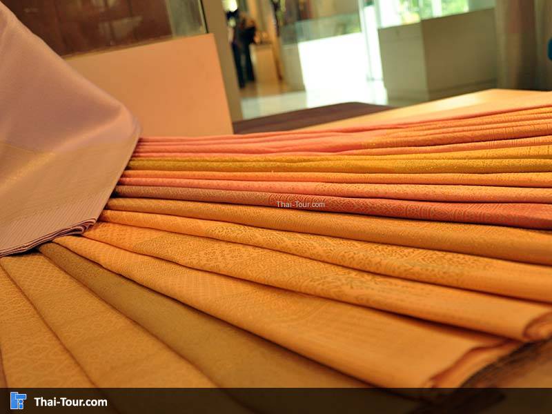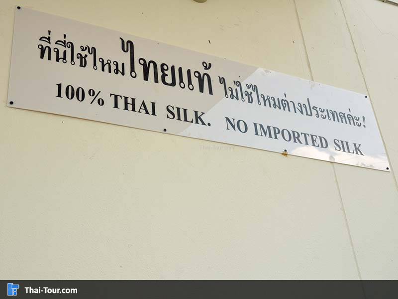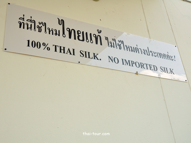 ผ้าไหมของที่นี่ ใช้เส้นไหมไทยแท้รังเหลืองในการทอ เนื้อผ้าจึงแน่นหนามีน้ำหนัก