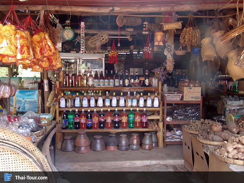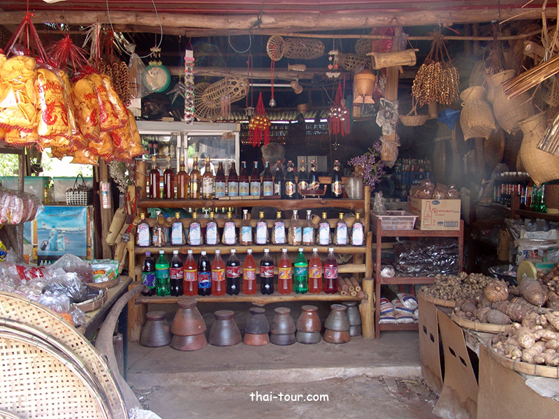 ร้านค้า ส่วนใหญ่เป็นสินค้าจากป่า เหล้า ยาดอง อุปกรณ์ในครัวเรือน