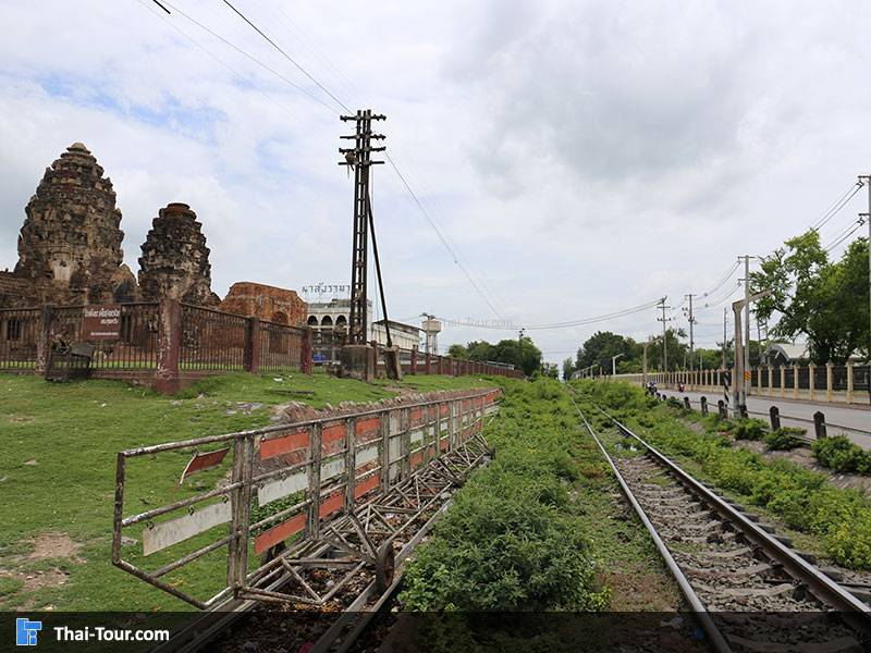 พระปรางค์สามยอดติดกับรางรถไฟ