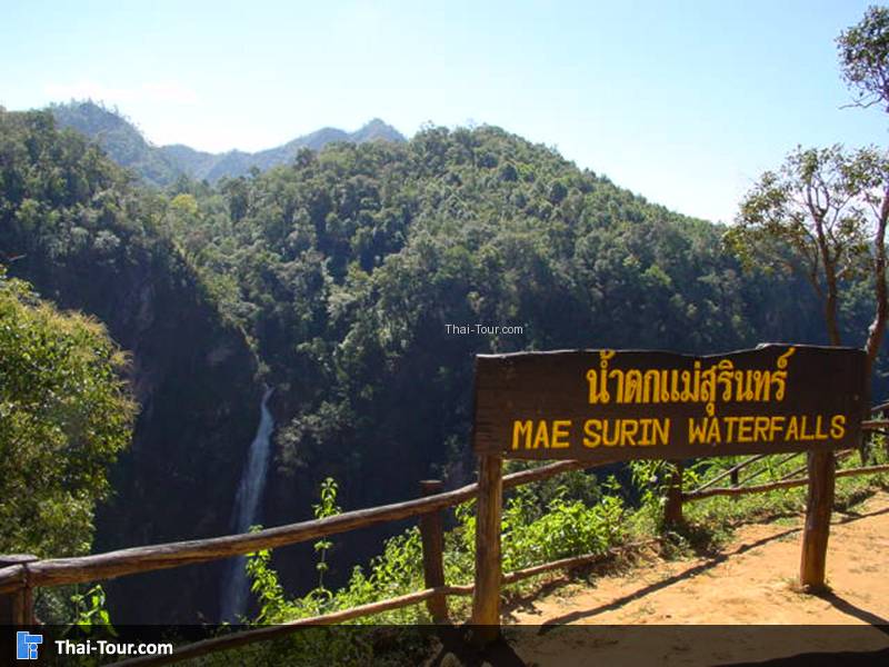 อยู่ในเขตบ้านแม่สุรินทร์ ตำบลแม่ยวมน้อย อ.ขุนยวม การเดินทางใช้ทางหลวงหมายเลข 108 ถึงอ.ขุนยวม และจากขุมยวมเข้าไปน้ำตกแม่สุรินทร์ ระยะทางประมาณ 50 กม. เป็นทางลูกรัง น้ำตกแม่สุรินทร์เป็นน้ำตกสวยงามมาก เป็นน้ำตกชั้นเดียวไหลจากหน้าผาสู่หุบเขาด้านล่าง