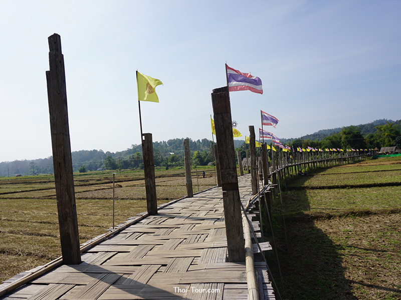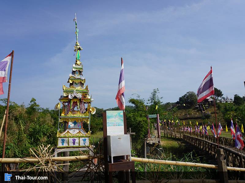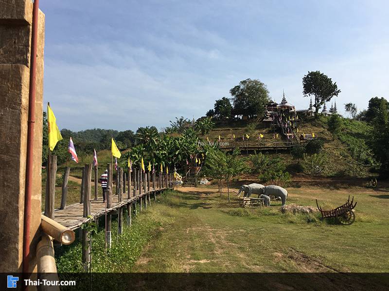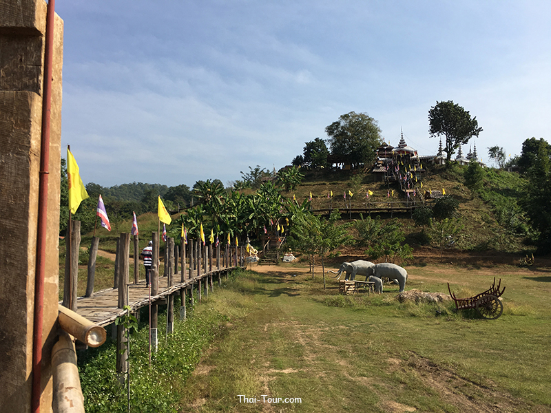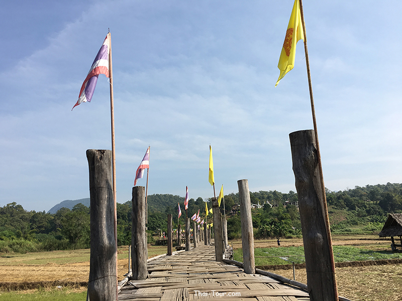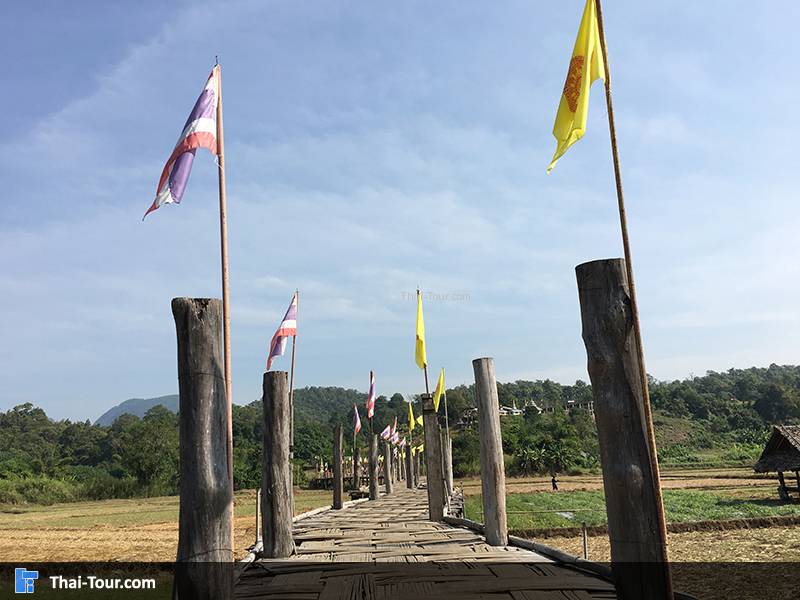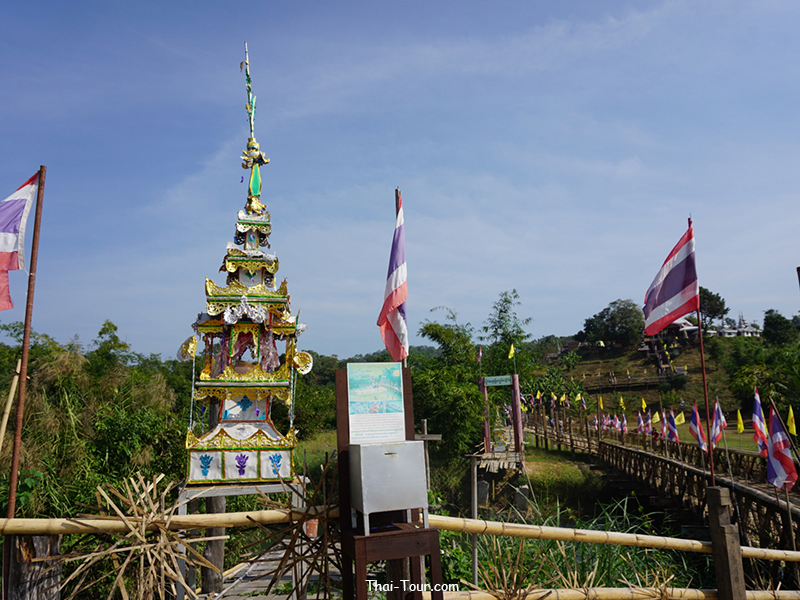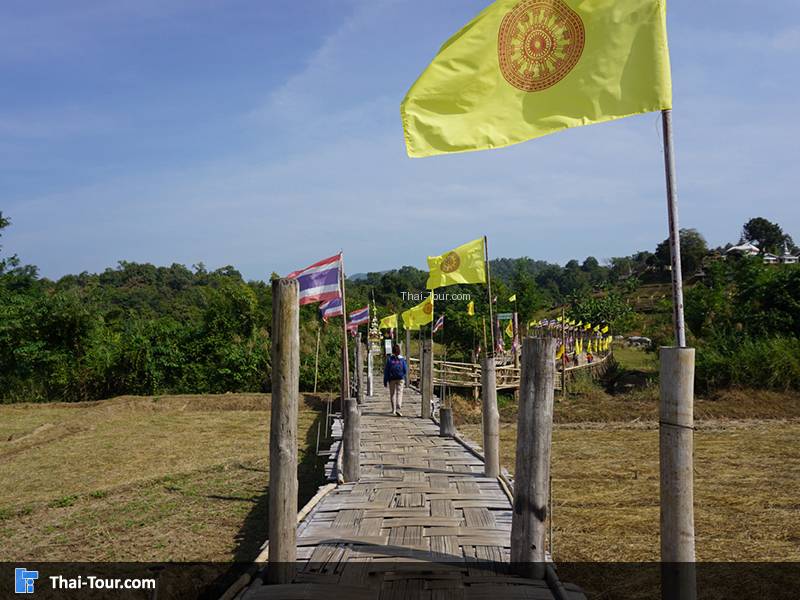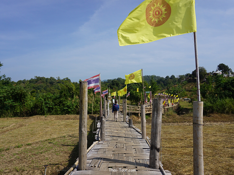 สะพานไม้ไผ่สานความยาวกว่า 500 เมตร ความกว้างของสะพาน 2 เมตร ที่เกิดจากแรงศรัทธาของชาวบ้าน ที่ร่วมแรงรวมใจกันสร้างสะพานไม้เพื่อให้พระภิกษุสงฆ์ใช้เป็นเส้นทางสัญจรลงมาบิณฑบาตรในหมู่บ้าน วัสดุที่ใช้ในการสร้างสะพานนี้ ได้จากการบริจาคเสาบ้านเก่าของคนในหมู่บ้าน แล้วนำมาตอกลงเป็นเสาสะพานทีละต้นๆ จนได้สะพานไม้ที่เปี่ยมไปด้วยพลังศรัทธาแห่งนี้ อีกหนึ่งสถานที่ท่องเที่ยวของเมืองสามหมอก นับได้ว่าเป็นที่เที่ยวแห่งใหม่ของเมืองแม่ฮ่องสอนเลยก็ว่าได้ โดยสถานที่ที่จะแนะนำต่อไปนี้ มีชื่อว่า “สะพานซูตองเป้” เป็นสะพานไม้ไผ่ ตั้งอยู่ที่บ้านกุงไม้สัก อำเภอเมืองฯ จังหวัดแม่ฮ่องสอน
