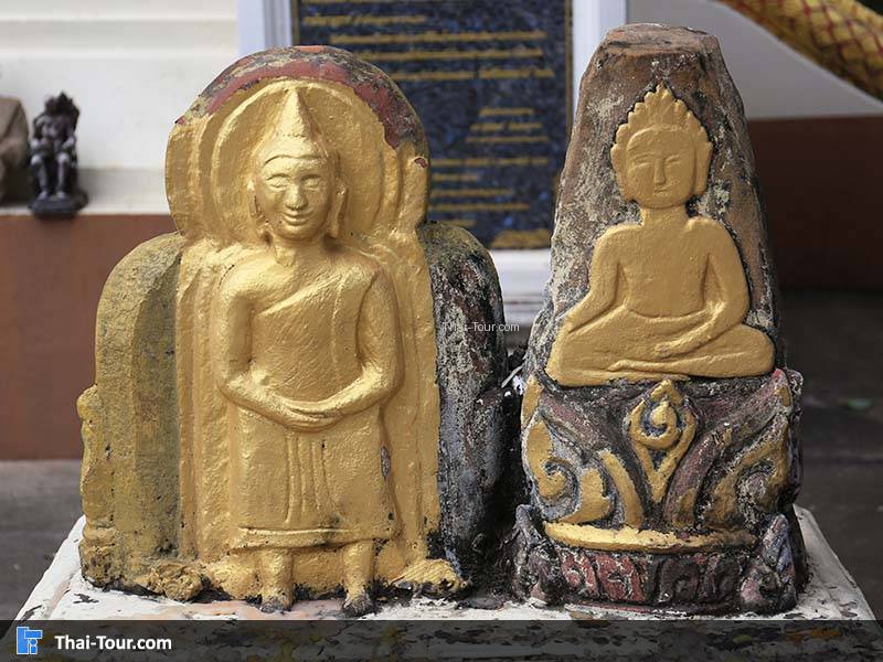 พระพุทธรูปก่ออิฐถือปูน และพระพุทธรูปเหล็กอยู่ใต้ต้นโพธิ์