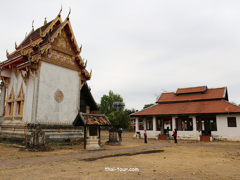 ที่วัดมีโบราณสถานที่น่าสนใจ เช่น วิหาร และซุ้มบันไดโบสถ์ที่เก่าแก่