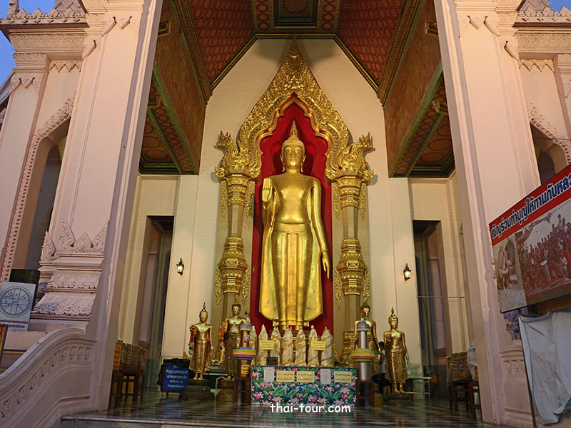 เป็นพระพุทธรูปยืน ปางห้ามญาติ หล่อด้วยโลหะ สูง 7.50 เมตร ถูกบูรณะโดยรัชกาลที่ 6 ตั้งอยู่ในซุ้มพระวิหารทิศเหนือ