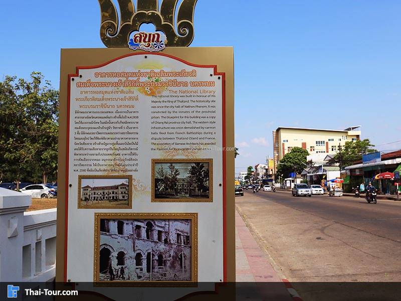 หอสมุดแห่งชาติเฉลิมพระเกียรติ เดิมเคยเป็นศาลากลางจังหวัดนครพนม ใช้แรงงานนักโทษในการก่อสร้างโดยใช้แปลนของศาลากลางจังหวัดเชียงรายเป็นต้นแบบ เริ่มสร้างครั้งแรกในปี พ.ศ.2458 ในสมัยที่พระยาพนมนครานุรักษ์(อุ้ย นาครทรรภ) เป็นผู้ว่าราชการจังหวัด (และเป็นผู้ว่าราชการจังหวัดนครพนมคนแรก) แล้วเสร็จในปี พ.ศ.2462