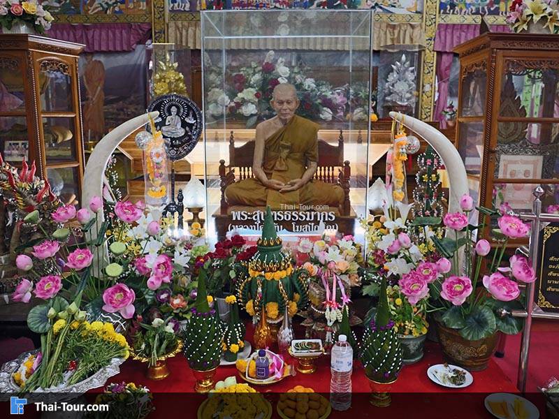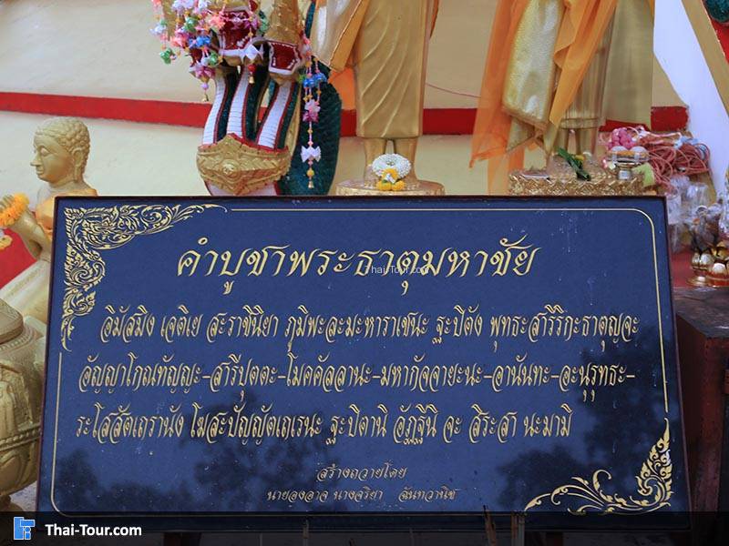 ประดิษฐาน ณ วัดโฆษดาราม ตำบลมหาชัย อำเภอปลาปาก ห่างจากตัวจังหวัดประมาณ 39 กม. ตามเส้นทางนครพนม-สกลนคร ทางหลวงแผ่นดินหมายเลข 22 แล้วแยกเข้าทางหลวงหมายเลข 2276 เข้าวัดอีก 1.8 กม. ถนนคอนกรีตถึงบริเวณวัดพระธาตุมหาชัย เป็นปูชนียสถานที่สำคัญยิ่งแห่งหนึ่ง เพราะเป็นที่บรรจุพระบรมสารีริกธาตุและพระอรหันต์สารีริกธาตุ ภายในพระอุโบสถวัดโฆษดารามนอกจากพระประธานคือ พระพุทธไชยสิทธิ์แล้วยังมีพระพุทธรูปสลักจากไม้ต้นสะเดาหวานที่ใหญ่ที่สุดในประเทศไทย และภาพเขียนบนฝาผนังอุโบสถแสดงพุทธประวัติ มีลวดลายศิลปกรรมที่งดงามมากในภาคอีสาน