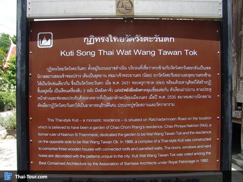 ป้าย กุฎิทรงไทยวัดวังตะวันตก