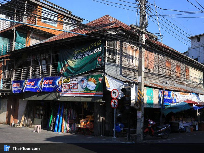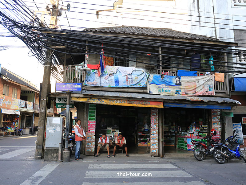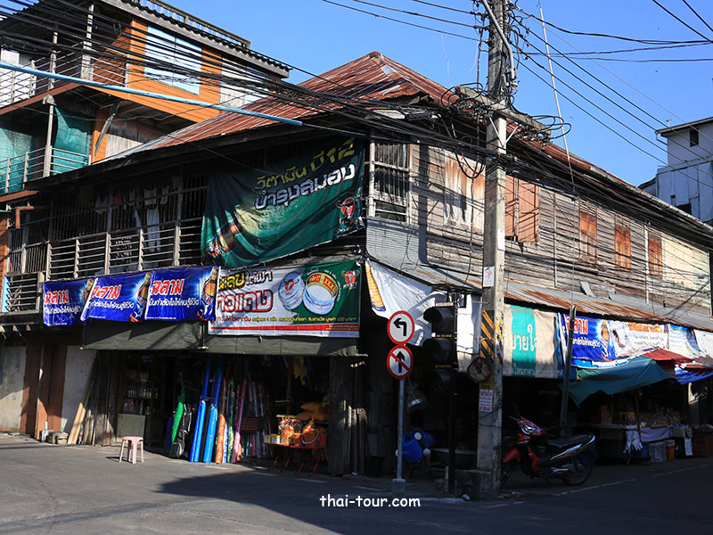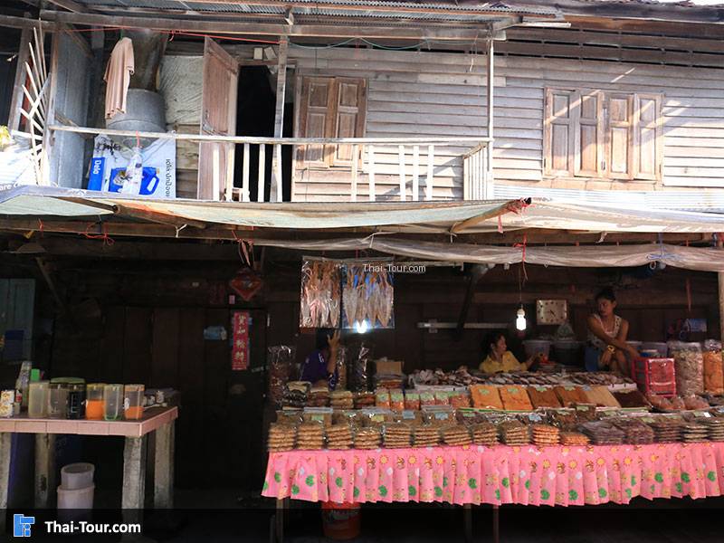 ส่วนตลาดเช้าจะอยู่ฝั่งตรงข้ามถนนติดกับวัดเสาธงทองจะขายอาหาร และผัก ผลไม้เป็นหลัก แม้ว่าจะเป็นเมืองเล็กๆ แต่ในทุกวันบรรยากาศทั้งเช้าและเย็นผู้คนจะคึกคักมาจับจ่ายซื้อของกันเนื่องแน่น
