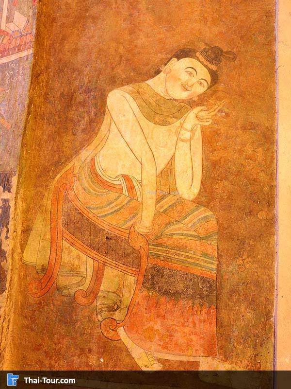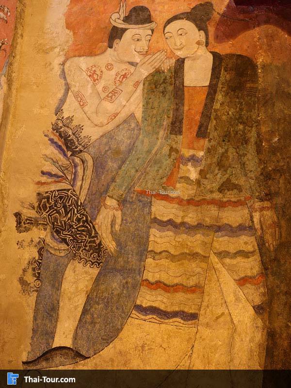ชีวิตความเป็นอยู่ของคนเมืองน่าน หญิงสาวกำลังทอผ้าด้วยกี่พื้นเมือง นอกชานมีเรือนเล็กๆตั้งหม้อน้ำดินเผาที่เรียกว่า “ร้านน้ำ” ส่วนชายหนุ่มไว้ผมทรงหลักแจวหรือทรงมหาดไทย แสดงให้เห็นอิทธิพลตะวันตกที่เข้ามาผสมผสานในวิถีพื้นเมืองน่าน ภาพชาวต่างประเทศ ที่เข้ามาเมืองน่านช่วงรัชกาลที่ 5 ทรงผม และเครื่องแต่งกายของผู้หญิงเป็นรูปแบบเดียวกับที่กำลังเป็นที่นิยมในยุโรปขณะนั้น