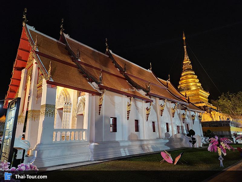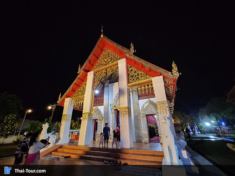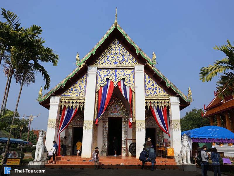 เป็นวิหารขนาด ใหญ่รูปทรงสร้างตามสถาปัตยกรรมทางภาคเหนือ ลักษณะภายในโอ่โถง ด้านหน้ามีสิงห์คู่ยืนตรงเชิงบันใดด้านละตัว มีทางเข้า 3 ทาง ประตูกลางทำเป็นประตูใหญ่ และประตูเล็กอยู่ด้านซ้าย และด้านขวามีทาง ขึ้นเป็นประตูเล็ก ๆ ตรงข้ามพระประธานด้าน ทิศตะวันออกและตะวันตกอีก 2 ข้าง ทำหลังคาซ้อนกัน