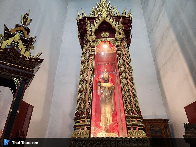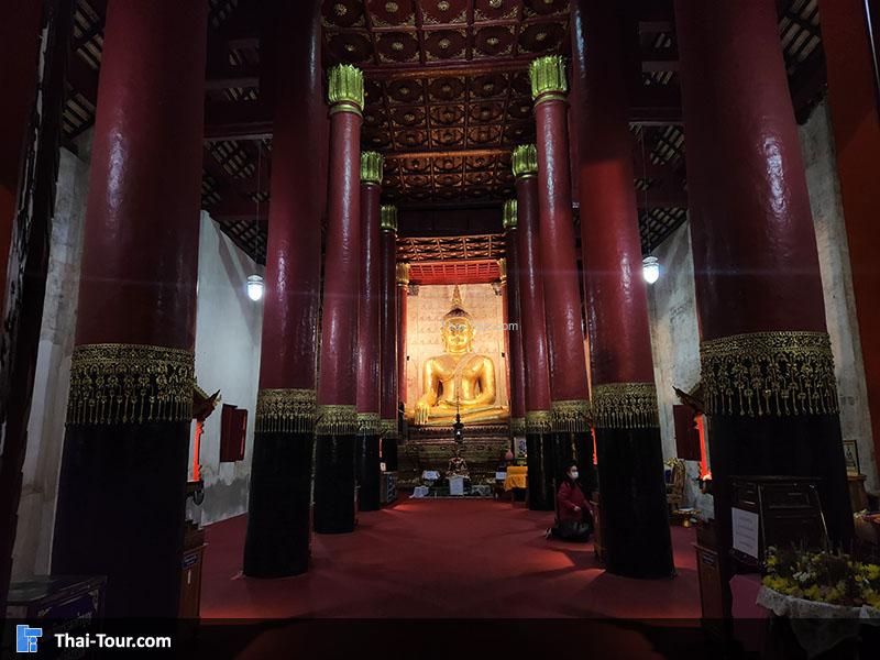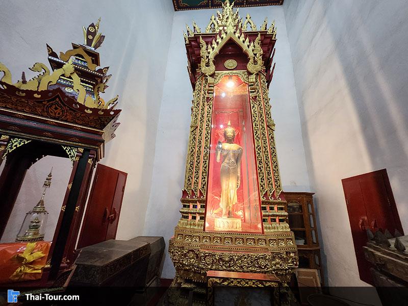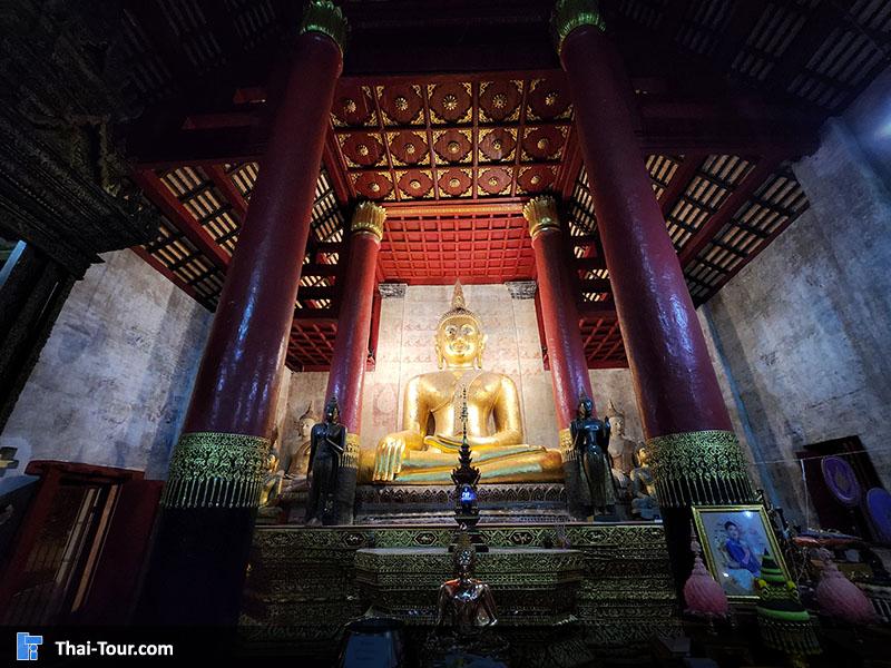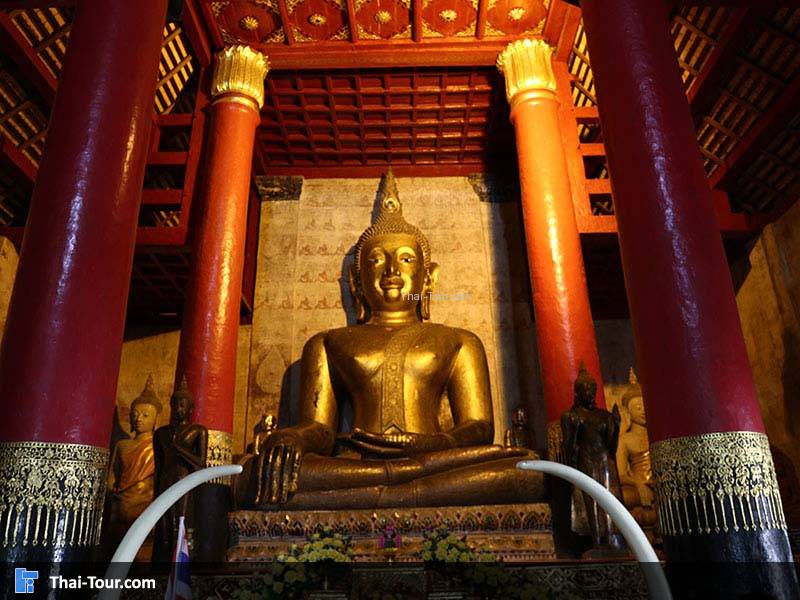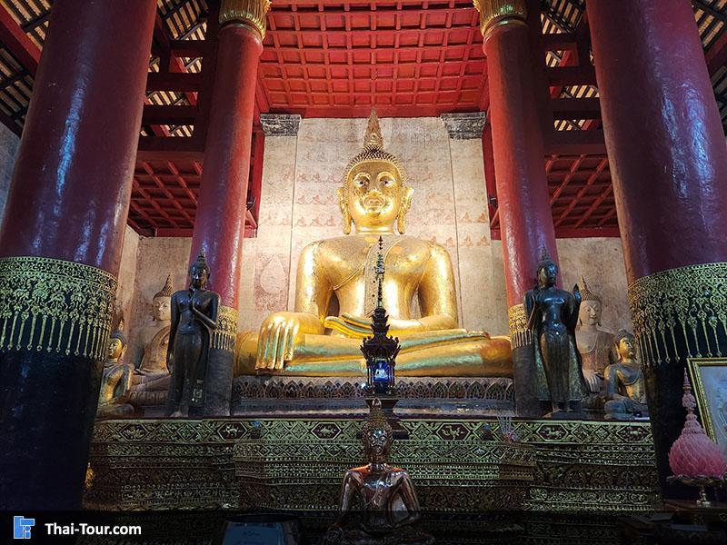 ซึ่งเป็นทองคำ 65 % สูง 145 เซ็นติเมตร ยอดพระโมฬี ทำเสริมเมื่อ พ.ศ. 2442 หนัก 69 บาท เจ้างั่วฬารผาสุม เจ้าผู้ครองนครน่านองค์ที่ 14 แห่งราชวงค์ภูคา เป็นผู้สร้างเมื่อวันพุธ เดือน 6 เหนือ พ.ศ. 1969 เป็นศิลปะสุโขทัย ประดิษฐานอยู่ที่หอพระไตรปิฎกใหญ่ที่สุดในประเทศ