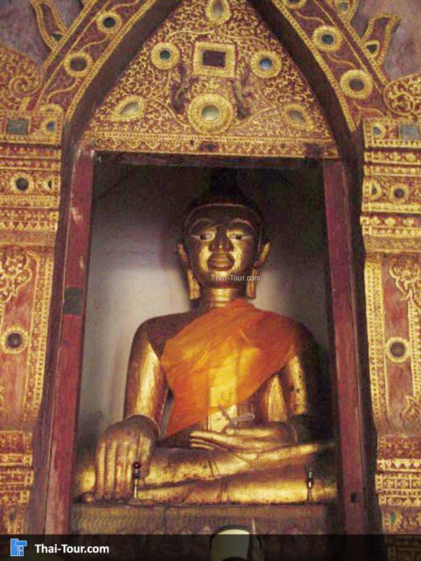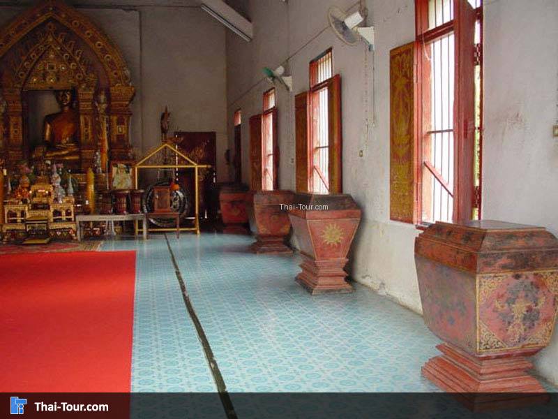 ในพระอุโบสถประดิษฐาน “พระเจ้าฝนแสนห่า” ซึ่งชาวเมืองน่านเคยนำมาแห่ขอฝนให้ตกต้องตามฤดูกาล นอกจากนั้นยังมีธรรมาสน์แกะสลัก ฝีมือช่างพื้นเมืองน่านที่เก่าที่สุดเท่าที่เคยพบ สันนิษฐานว่าสร้างในสมัยเจ้าอัตถวรปัญโญ ราวครึ่งแรกของพุทธศตวรรษที่ 24