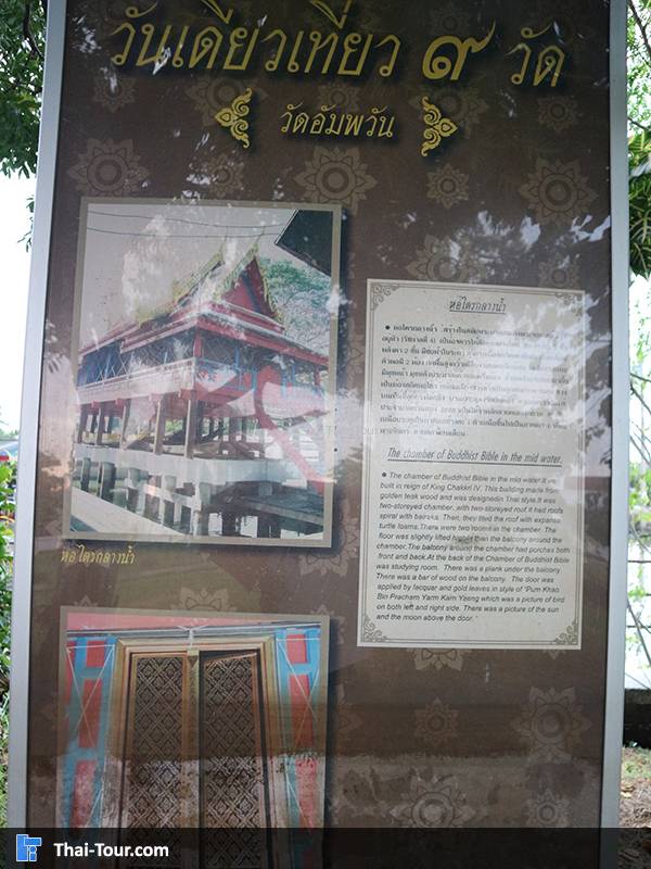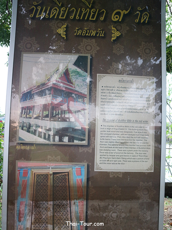 เดิมชื่อ วัดบางม่วง เป็นวัดสร้างในสมัยอยุธยาตอนปลายประมาณรัชกาลพระเจ้าปราสาททอง ตั้งอยู่ริมคลองแม่น้ำอ้อม ตำบลบางม่วง สิ่งที่น่าสนใจของวัดนี้คือ หอไตรกลาง-น้ำ เป็นสถาปัตยกรรมไทยที่สมบูรณ์ที่สุด เป็นเรือนไม้ตั้งอยู่ในสระน้ำขนาดเล็ก ตัวหอเป็น 2 ชั้น ชั้นล่างโล่งไม่มีพื้นและฝา ชั้นบนเป็นตัวหอขนาด 2 ห้อง ช่วงล่างเป็นลูกฟักกระดานดุน