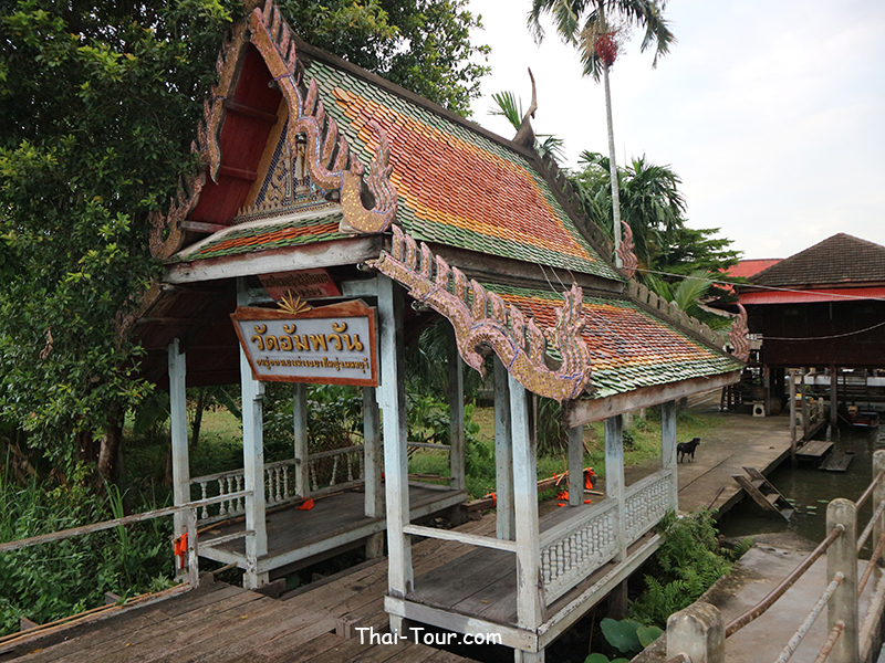 นอกจากนี้ยังมีมณฑปพระพุทธบาท ภายในมีพระพุทธบาทจำลองทำด้วยโลหะประดิษฐานอยู่บนฐานปูน และศาลาท่าน้ำที่งดงามมาก การเดินทางเข้าถึงวัดอัมพวัน สามารถเดินทาง ได้ทั้งทางน้ำและทางบก ดังนี้ ทางน้ำ โดยนั่งเรือโดยสารเป็นเรือหางยาว จากท่าเรือบริเวณ หน้าที่ว่าการอำเภอบางใหญ่ ใช้เวลาประมาณ 5 นาที ค่าโดยสาร คนละ 5 บาท ทางรถ โดยใช้เส้นทางถนนวงแหวนรอบนอกบางบัวทอง-ตลิ่งชัน แยกซ้ายมือที่ตำบลบางม่วง