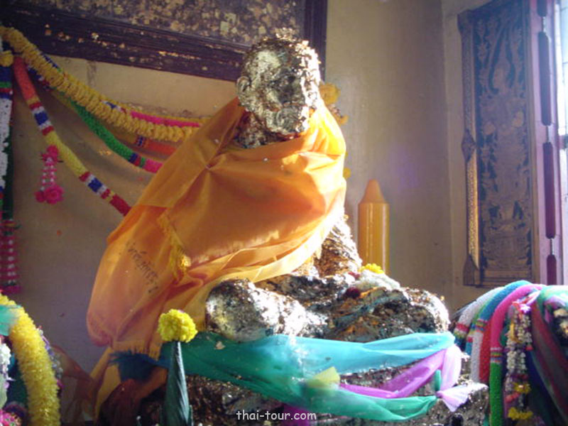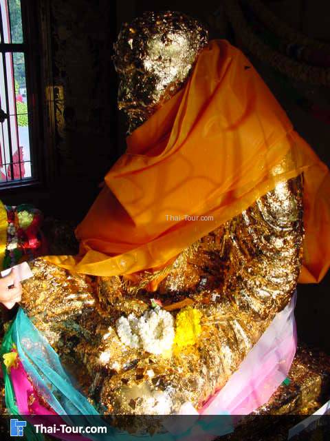 วัดช้างให้ ตั้งอยู่ที่ตำบลควนโนรี อำเภอโคกโพธ์ิ เป็นวัดเก่าแก่สร้างมาแล้วกว่า 300 ปี ตามตำนานกล่าวว่า พระยาแก้มดำเจ้าเมืองไทรบุรี ต้องการหาชัยภูมิสำหรับสร้างเมืองใหม่ให้กับน้องสาว จึงได้เสี่ยงอธิฐาน ปล่อยช้างให้ออกเดินทางไปในป่า โดยมีเจ้าเมืองและไพร่พลเดินติดตามไป จนมาถึงวันหนึ่ง ช้างได้หยุดอยู่ ณ ที่แห่งหนึ่ง แล้วร้องขึ้นสามครั้ง พระยาแก้มดำจึงได้ถือเป็นนิมิตที่ดี จะใช้บริเวณนั้นสร้างเมือง แต่น้องสาวไม่ชอบ พระยาแก้มคำจึงให้สร้างวัด ณ บริเวณดังกล่าวแทน แล้วให้ชื่อว่า วัดช้างให้ แล้วนิมนต์พระภิกษุรูปหนึ่ง ที่ชาวบ้านเรียกว่า ท่านลังกา หรือ สมเด็จพะโคะ หรือ หลวงพ่อทวดเหยียบน้ำทะเลจืด มาเป็นเจ้าอาวาสองค์แรก ท่านได้เดินธุดงค์ไปมา ระหว่างเมืองไทรบุรีกับวัดช้างให้ และได้สั่งลูกศิษย์ไว้ว่า ถ้าท่านมรณะภาพ ขอให้นำศพไปทำการฌาปนกิจ ณ วัดช้างให้ ซึ่งเมื่อท่านมรณะภาพที่เมืองไทรบุรี ลูกศิษย์ก็ได้นำศพท่านมา ทำการฌาปนกิจที่วัดช้างให้ อัฐิของท่านส่วนหนึ่งฝังไว้ที่วัดช้างให้ อีกส่วนหนึ่งนำกลับไปเมืองไทรบุรี ต่อมาได้สร้างสถูปบรรจุอัฐิของท่านไว้ที่วัดช้างให้