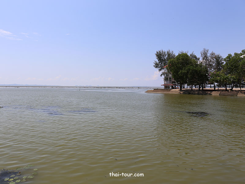 อยู่เลยวัดวังไปตามทางหลวงหมายเลข 4047 อีกประมาณ 2 กม. เป็นหาดทรายที่มีทิวสนร่มรื่นริมฝั่งทะเลสาบสงขลา ซึ่งเป็นทะเลสาบน้ำจืดที่ใหญ่ที่สุดในเอเชีย มีศาลากลางน้ำ ชื่อ "ศาลาลำปำที่รัก" สำหรับชมทิวทัศน์บริเวณทะเลสาบ และจากบริเวณชายหาด มีสะพานเชื่อมไปยังเกาะลอย ซึ่งเป็นเกาะ ที่เกิดจากการทับถมของตะกอนปากน้ำลำปำ