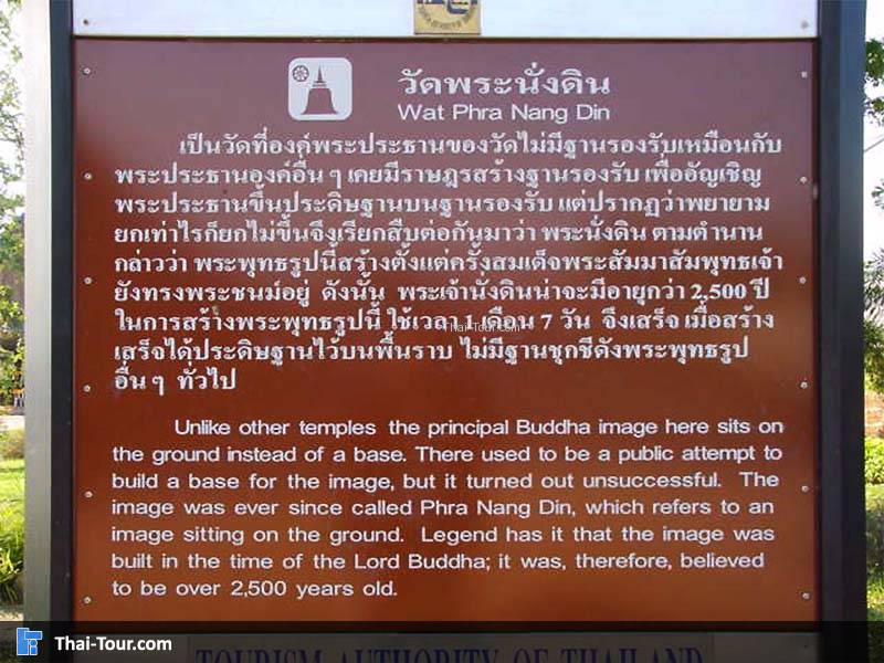 อยู่ในตำบลเวียง ไปตามทางหลวง 1148 ห่างจากตัวอำเภอ 4 กม. เป็นวัดที่องค์พระประธาน ของวัดไม่มีฐานชุกชีรองรับเหมือนกับพระประธานองค์อื่นๆ เคยมีราษฎรสร้างฐานชุกชีเพื่ออัญเชิญ พระประธานขึ้นประดิษฐาน แต่ปรากฏว่าพยายามยกเท่าไรก็ยกไม่ขึ้น จึงเรียกสืบต่อกันมาว่าพระนั่งดิน