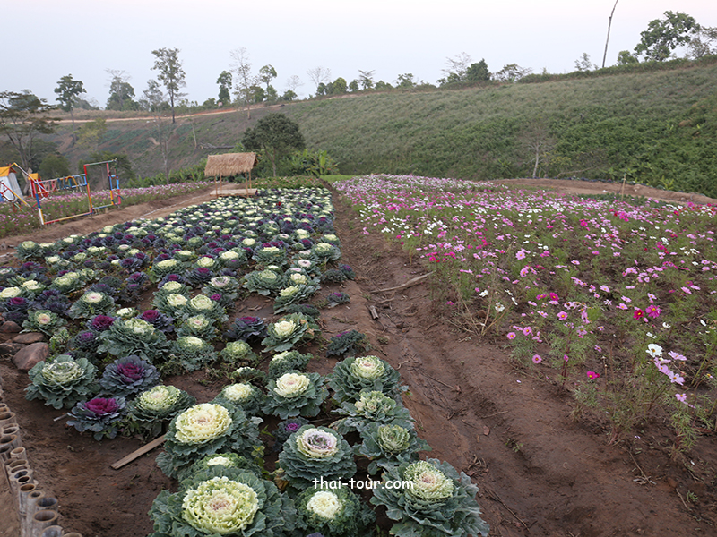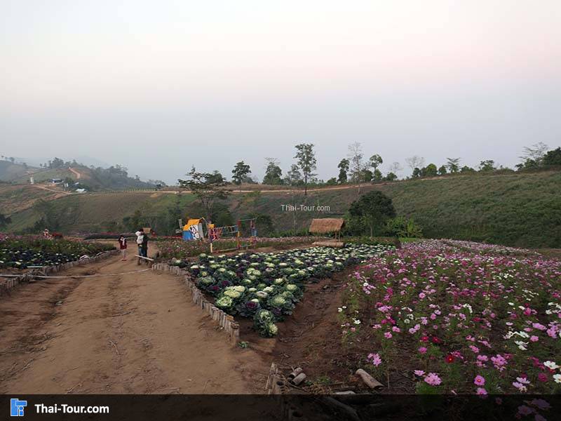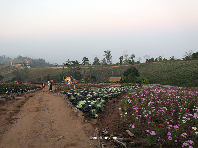 บรรยากาศบริเวณสวนดอกไม้ และไร่กะหล่ำปลี