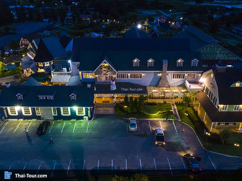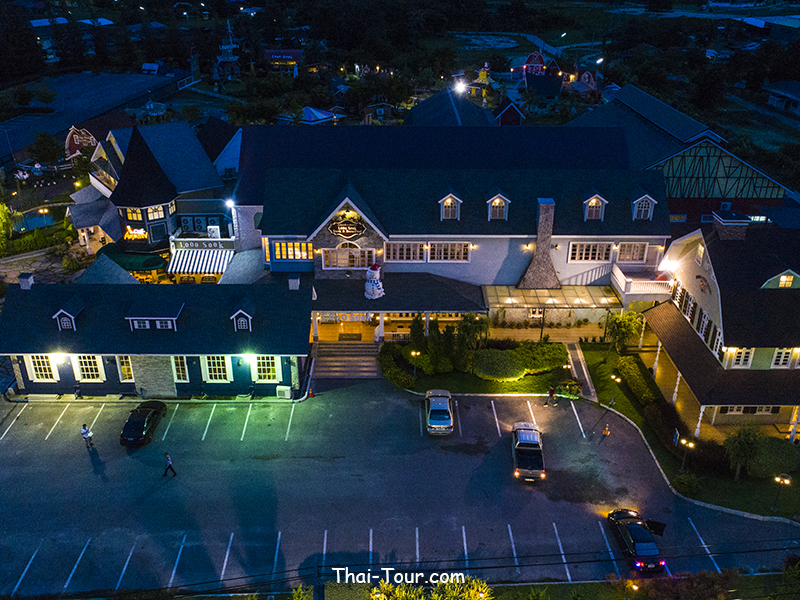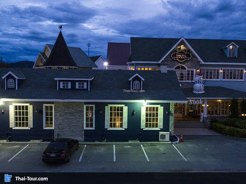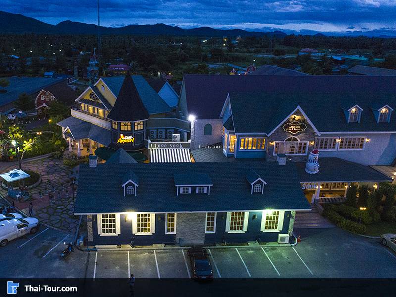 ซ้ายมือคือทางเข้าฟาร์ม ตรงกลางหน้า คือโซนอาหารและเครื่องดื่ม