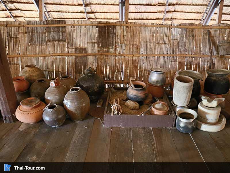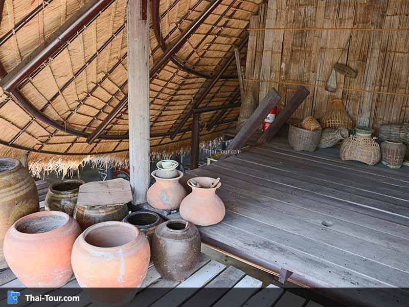 ด้านในเรือน มี เครืองปั้นดินเผา