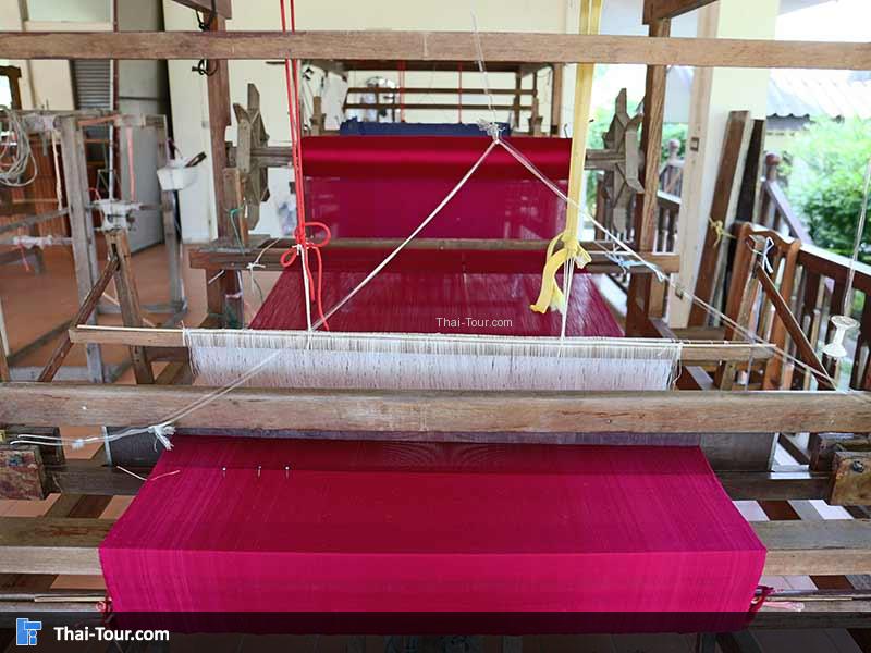 เครื่องทอผ้า ผ้าสีแดงสวยๆ