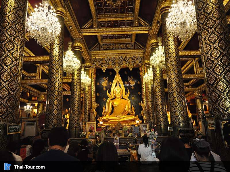 พระพุทธชินสีห์พระพุทธชินราช เป็นพระพุทธรูปปางมารวิชัยขนาดใหญ่ หล่อด้วยทองสัมฤทธิ์ ขนาดหน้าตักกว้าง 5 ศอก 1 คืบ 5 นิ้ว และสูง 7 ศอก ได้รับการกล่าวขานว่าเป็นพระพุทธรูปที่มีพุทธลักษณะงดงามที่สุดในประเทศ เส้นรอบนอกพระวรกายอ่อนช้อย พระขนงโก่ง พระเกตุมาลาเป็นเปลวเพลิง พระหัตถ์มีปลายนิ้วทั้งสี่เสมอกัน ซึ่งเป็นลักษณะพิเศษเรียกว่า ทีฒงฺคุลี ซุ้มเรือนแก้วทำด้วยไม้แกะสลักสร้างในสมัยอยุธยา แกะสลักเป็นรูปมกร (ลำตัวคล้ายมังกร มีงวงคล้ายช้าง) อยู่ตรงปลายซุ้ม และตัวเหรา (คล้ายจระเข้) อยู่ตรงกลาง และมีเทพอสุราคอยปกป้ององค์พระอยู่ 2 องค์
