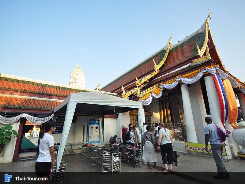 จุดวางรองเท้า ก่อนเข้าไหว้พระฯ