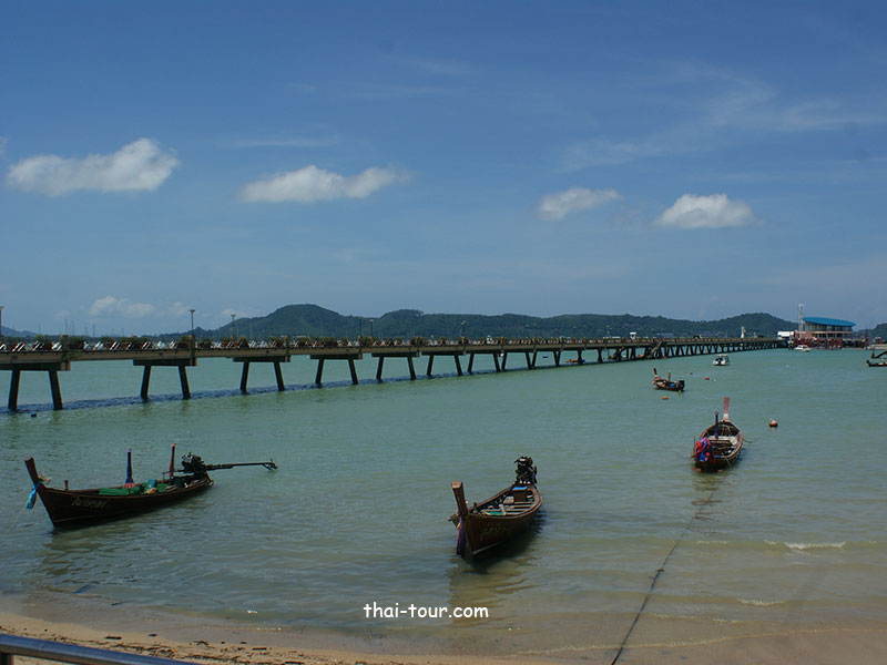 อยู่ห่างตัวเมือง 11 กม. ทางทิศใต้ของเกาะภูเก็ตไปตามทางที่ไปหาดราไว เมื่อถึงห้าแยกฉลองเลี้ยวซ้ายประมาณ 1 กม.ถึงอ่าวฉลอง มีสะพานไม้ทอดยาวไปในทะเล ชายหาดเป็นรูปโค้งยาวเหยียดมองเห็นทิวมะพร้าวริมหาดเอนลู่ออกทะเล ทะเลบริเวณนี้ไม่เหมาะแก่การเล่นน้ำ เพราะหาดเป็นโคลน ที่อ่าวฉลองนี้นักท่องเที่ยวจะเช่าเรือไปเที่ยวตามเกาะต่างๆ หรือเช่าไปตกปลาได้