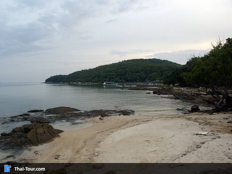 หาดทรายขาวยามน้ำลงจะเห็นปูเกาะตามโขดหิน มีบ้านพักชื่อ แสงเทียนรีสอร์ท เน้นความสงบหาดทรายที่นี่สะอาดกว่าที่หัวเกาะ พวกที่ชอบกินลมชมดาวเหมาะกับหาดนี้เป็นที่สุด