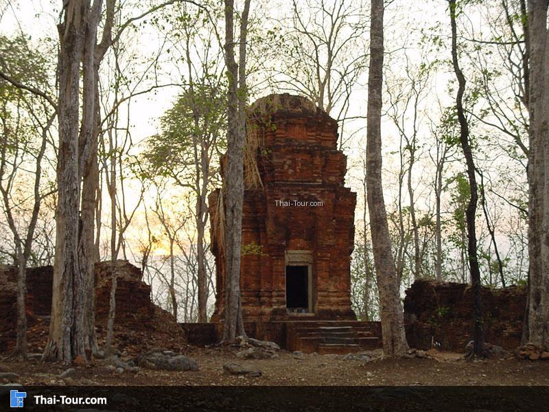 ตั้งอยู่ในวัดเขาน้อยสีชมพู ตำบลคลองน้ำใส อำเภออรัญประเทศ ห่างจากตัวอำเภอไปทาง ทิศใต้ประมาณ 12 กม. โบราณสถานตั้งอยู่บนยอดเขาเตี้ยๆ สูงราว 80 เมตร มีบันไดทางขึ้น 254 ขั้น เดินไปตามทางลาดไม่ไกลนัก ก็จะถึงบริเวณตังปราสาทก่ออิฐ ซึ่งประกอบด้วยปรางค์ทิศเหนือ ปรางค์องค์กลาง และวิหารทิศใต้ จะมีเพียงปรางค์องค์กลางเท่านั้น ที่ยังคงสภาพเป็นองค์ปรางค์ ส่วนปรางค์ทางทิศเหนือ และวิหารทิศใต้เหลือเพียงฐานเท่านั้น ต่อมาเมื่อปี พ.ศ. 2478 ปราสาทเขาน้อยได้รับการขึ้นทะเบียนเป็นโบราณสถานแห่งชาติ และได้มีการสำรวจขุดแต่งจากกรมศิลปากร ซึ่งทำให้พบทับหลังหินทราย 5 ชิ้น นักโบราณคดีพบว่าเป็นศิลปะเขมรแบบไพรกเมง 2 ชิ้น และเป็นแบบสมโบร์ไพรกุก 3 ชิ้น สันนิษฐานอายุอยู่ในช่วงพุทธศตวรรษที่ 12-13 และเป็นศาสนสถานในศาสนาฮินดู ส่วนโบราณวัตถุที่ได้จากการขุดค้น เก็บรักษาและตั้งแสดงอยู่ที่พิพิธภัณฑสถานแห่งชาติปราจีนบุรี