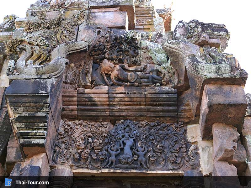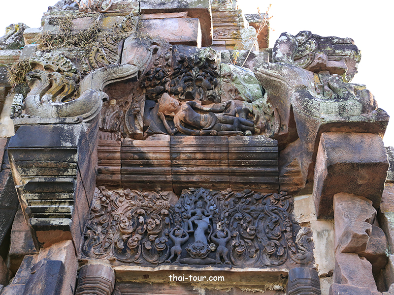 ลักษณะคล้ายกับปราสาทหินของขอมที่ปรากฏหลายแห่งภาคอีสาน ลวดลายสลักหินบนซุ้มประตู