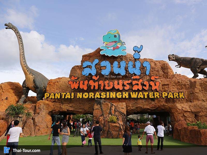 สวนน้ำพันท้ายนรสิงห์ ถูกสร้างให้เป็น Jurassic Water Park แบบครบวงจร เพราะไม่ใช่แค่เครื่องเล่นในสวนน้ำเท่านั้น ยังมีไดโนเสาร์สายพันธุ์ต่างๆ ในยุคจูราสสิคมากกว่า 70 ตัว แถมกิจกรรมล่องลำธาร ลอดถ้ำ ชมทิวทัศน์ และอื่นๆ เพียบ