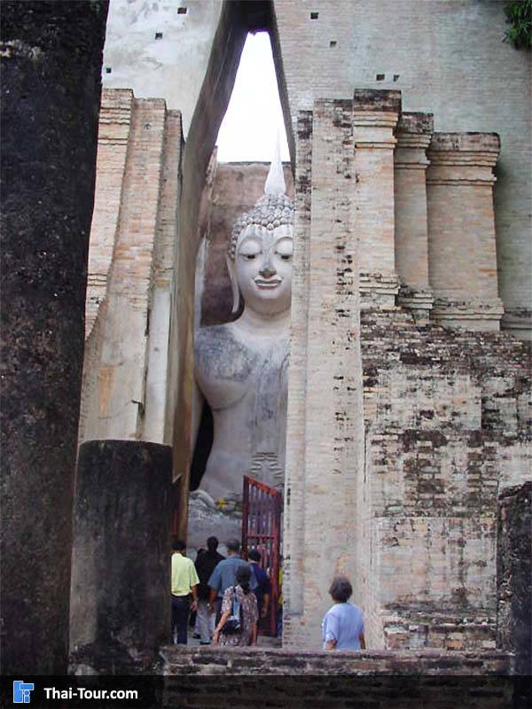 ตั้งอยู่ห่างจากวัดพระพายหลวงไปทางทิศตะวันตก 800 เมตร เป็นวัดที่ประดิษฐานพระอจนะ ซึ่งเป็นพระพุทธรูปปางมารวิชัย และลักษณะของวิหารอันเป็นที่ประดิษฐานพระอจนะนั้น สร้างเป็นรูปสี่เหลี่ยมลักษณะคล้ายมณฑป แต่หลังคาพังทลายลงมาหมดแล้ว เหลือเพียงผนังทั้งสี่ด้าน ผนังแต่ละด้านก่ออิฐถือปูนอย่างแน่นหนา ผนังทางด้านใต้มีช่องให้คนเข้าไปภายใน และเดินขึ้นไปตามทางบันไดแคบๆ ถึงผนังด้านข้างขององค์พระอจนะ หรือสามารถขึ้นไปถึงสันผนังด้านบนได้ ภายในช่องกำแพงตามฝาผนังมีภาพเขียนเก่าแก่แต่เลอะเลือนเกือบหมด ภาพเขียนนี้มีอายุเกือบ 700 ปี นอกจากนี้แล้วบนเพดานช่องบันไดยังมีแผ่นหินชนวนขนาดใหญ่แกะสลักลวดลายต่างๆ ไว้มีจำนวนทั้งหมด 50 ภาพ เมื่อเดินตามช่องทางบันไดขึ้นไปจะโผล่บนหลังคาวิหารมองเห็นทิวทัศน์อันงดงามของเมืองเก่าสุโขทัยได้โดยรอบ เพราะเหตุใดวิหารวัดศรีชุมจึงมีความเร้นลับซ่อนอยู่