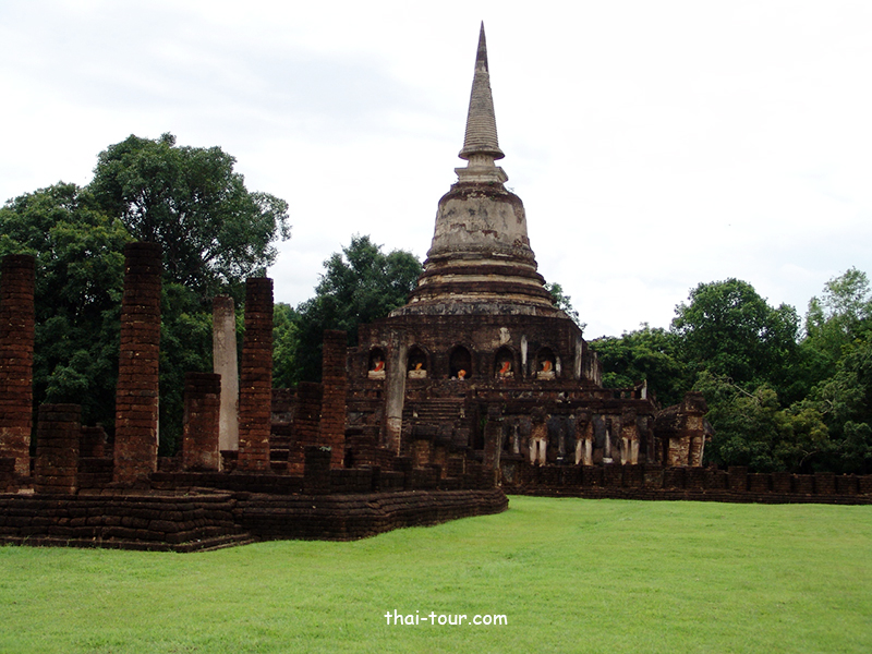 โบราณสถานที่สำคัญ คือ เจดีย์ประธานทรงลังกาตั้งอยู่ภายในกำแพงแก้วสี่เหลี่ยมจัตุรัส โดยมีซุ้มประตูทั้ง 4 ทิศ ประตูด้านหน้าและประตูด้านหลังเป็นทางเข้าออกก่อเป็นกำแพงศิลาแลงหนามีการเล่นระดับที่ซุ้มประตูอย่างสวยงาม สำหรับประตูด้านข้างก่อเรียงอิฐศิลาแลงปิดไว้เป็นประตูตัน