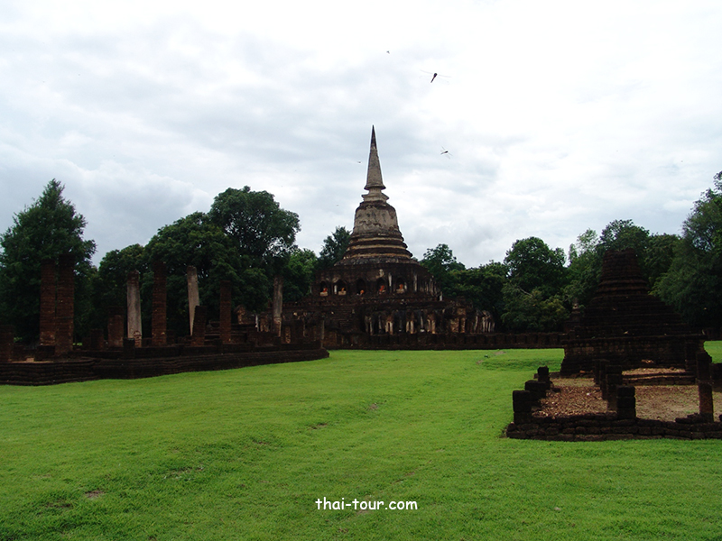 ตั้งอยู่ภายในกำแพงเมืองเกือบกึ่งกลางตัวเมืองศรีสัชนาลัย บริเวณที่ราบด้านเชิงเขาพนมเพลิงด้านทิศใต้ ในแนวเดียวกันกับวัดเจดีย์เจ็ดแถว