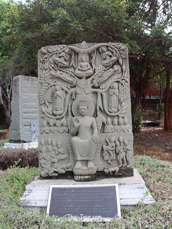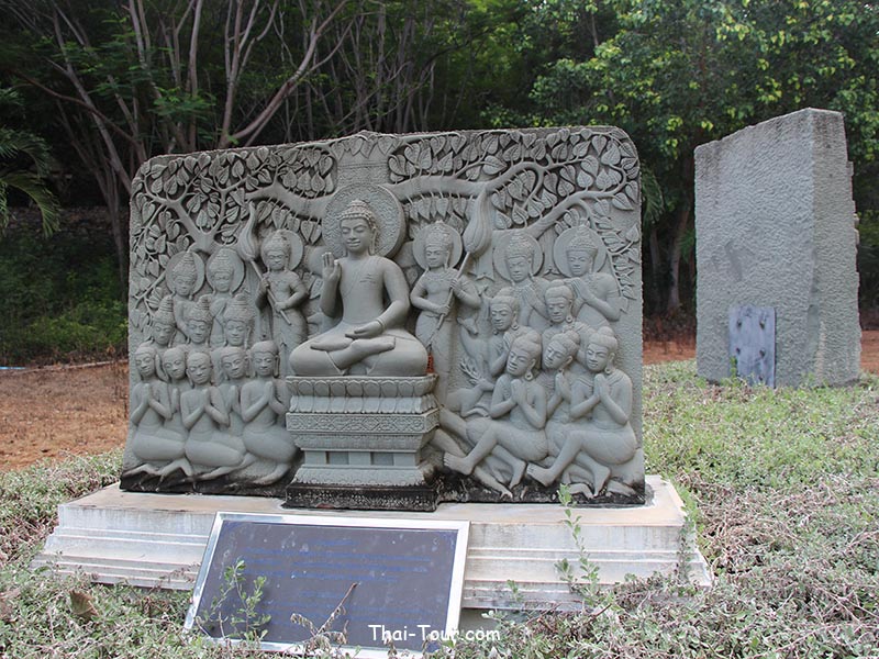 วัดเขาดีสลัก เป็นรอยพระพุทธบาทจำลองสร้างด้วยหินทรายแดง มีลักษณะแตกต่างจากรอยพระพุทธบาทที่พบตามที่อื่นๆ คือ เป็นรอยพระพุทธบาทนูนต่ำ ขนาดกว้างประมาณ 65.5 ซม. และยาวประมาณ 141.5 ซม. และนอกจากนี้ที่วัดเขาดีสลักแห่งนี้ ยังขุดค้นพบโพรงหินภายในมีพระพุทธรูปและโบราณวัตถุต่าง ๆ อีกหลายชนิด